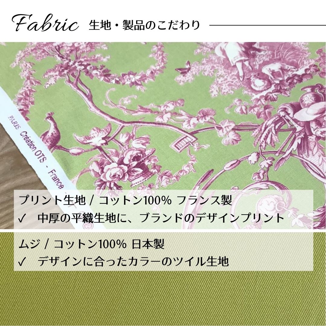 フランス「THEVENON」社のプリント生地を岡山の自社工場で縫製してます。