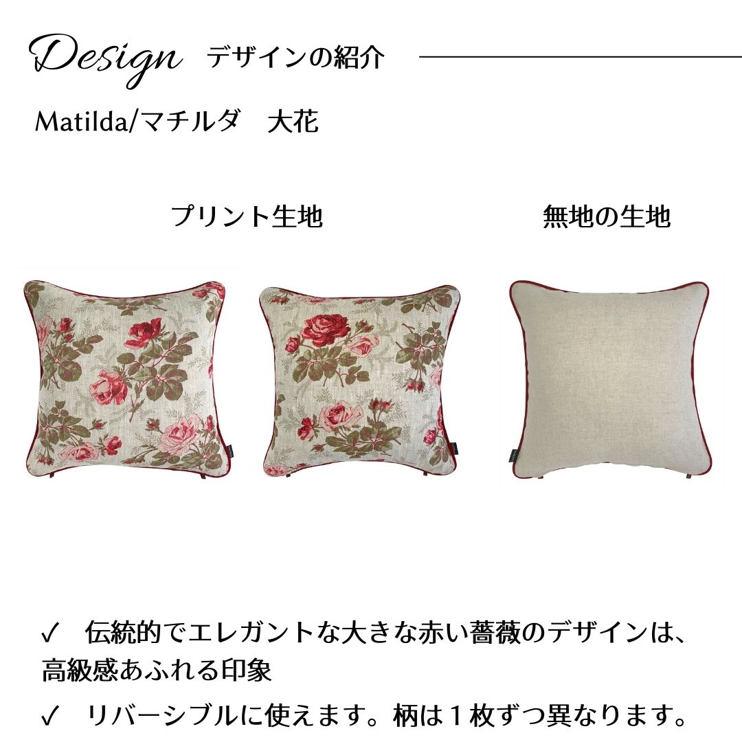 Out Style クッションカバー 45x45cm 輸入生地 花柄 フランス リネンプリント マチルダ