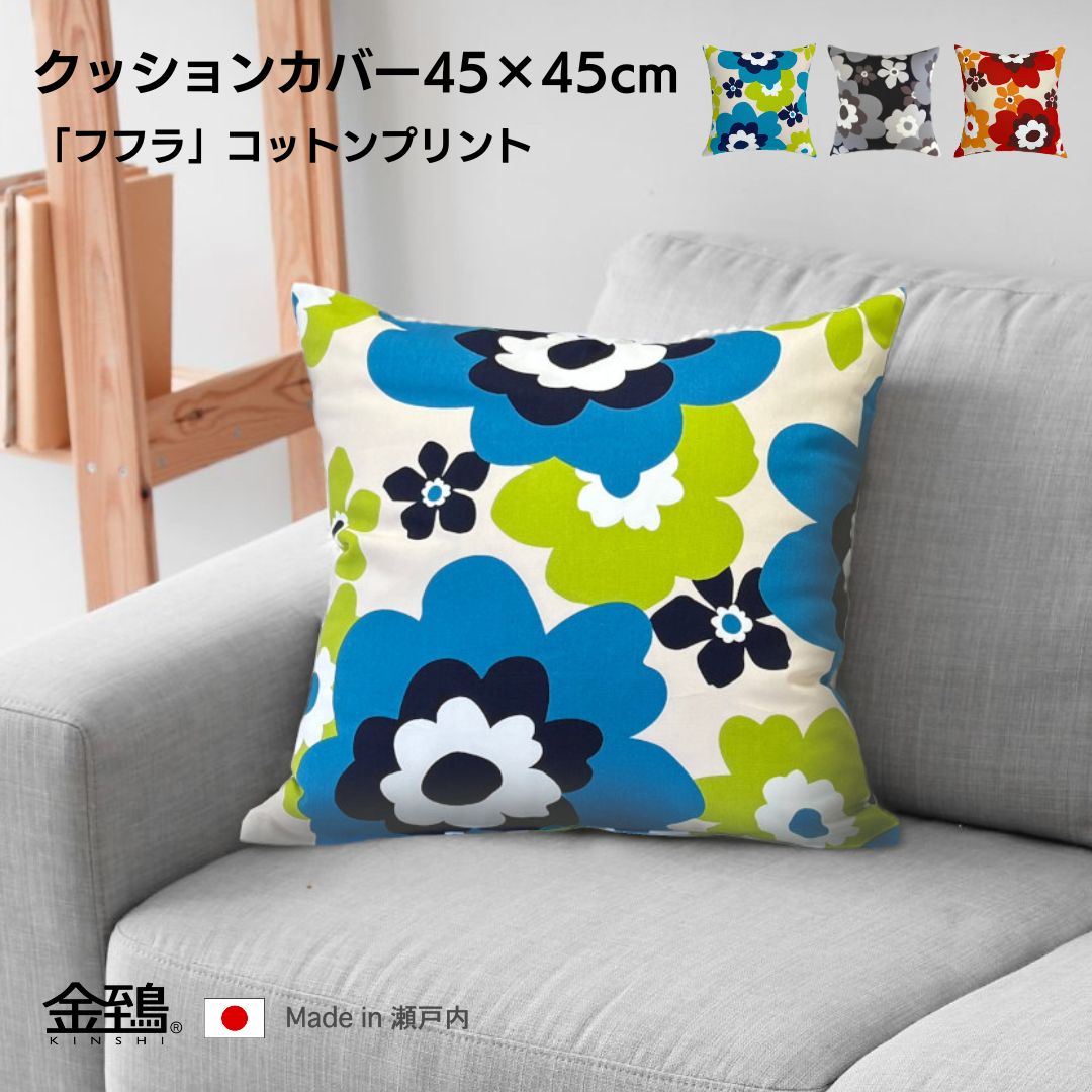 金鵄 クッションカバー 45x45cm 純日本製 コットンプリント 綿100% フフラ