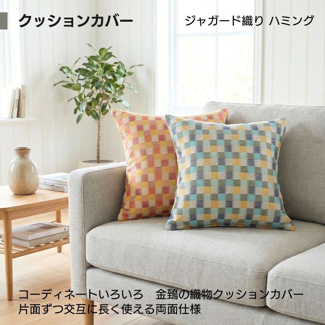 金鵄 クッションカバー 45x45cm ハミング ビスコース混 チェックジャガード織