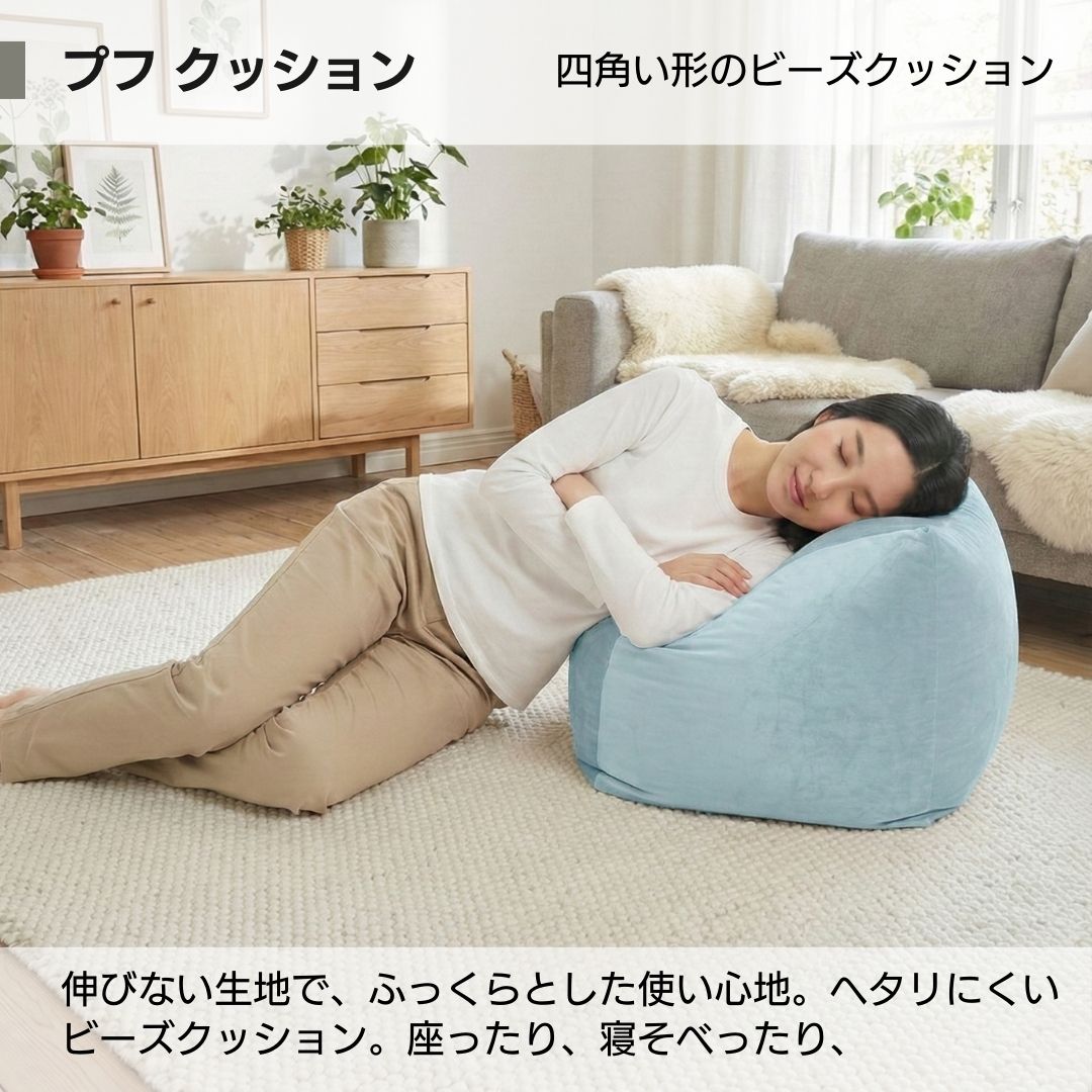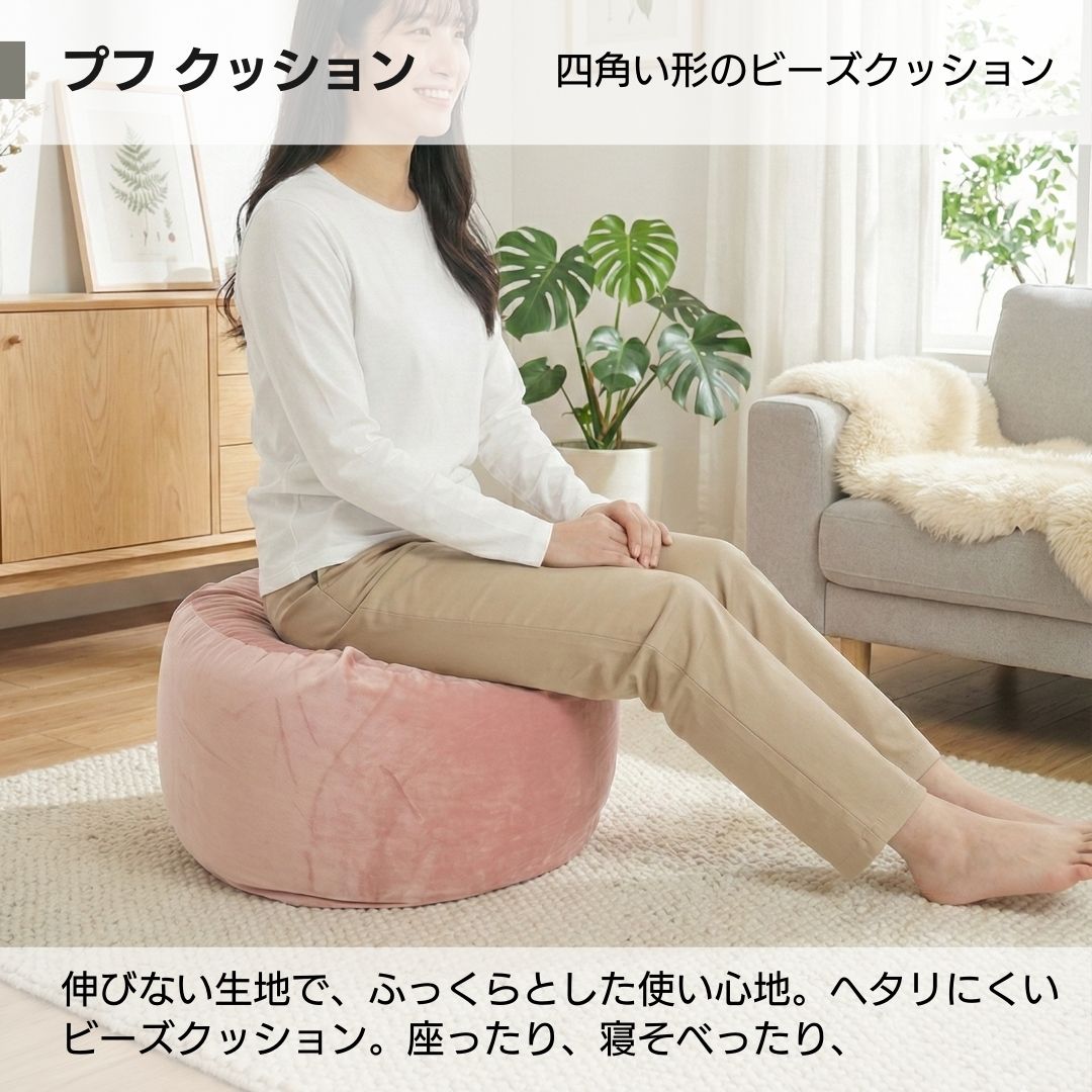 金鵄 ビーズクッション プフクッション 四角 日本製ビーズ ウレタンブレンド