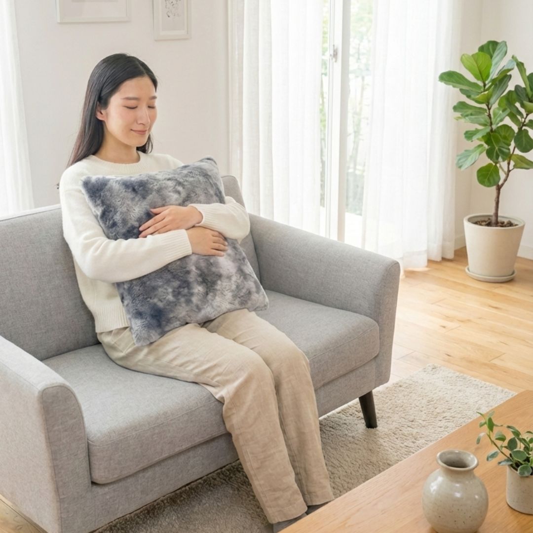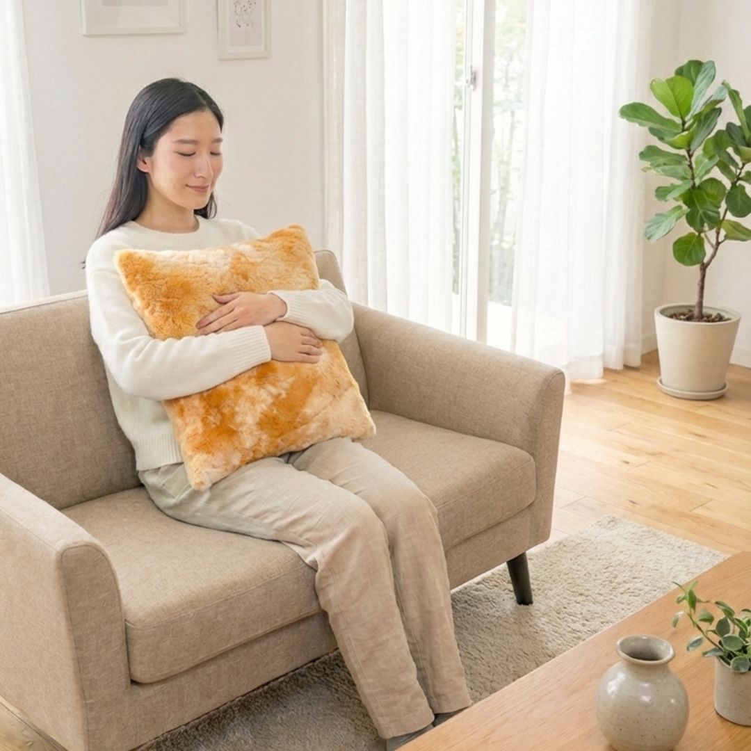 オールシーズン活躍 / 見た目は暖かそうですが、さらっとした毛並みは通気性も確保。冷房の効いた夏のお部屋から、温もりが恋しい冬まで、一年中快適にお使いいただけます。
