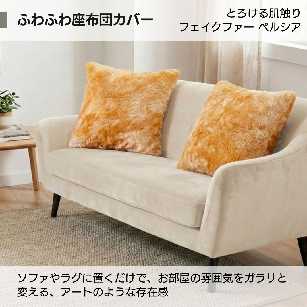 金鵄 クッションカバー 45x45cm ふわふわフェイクファー ペルシア