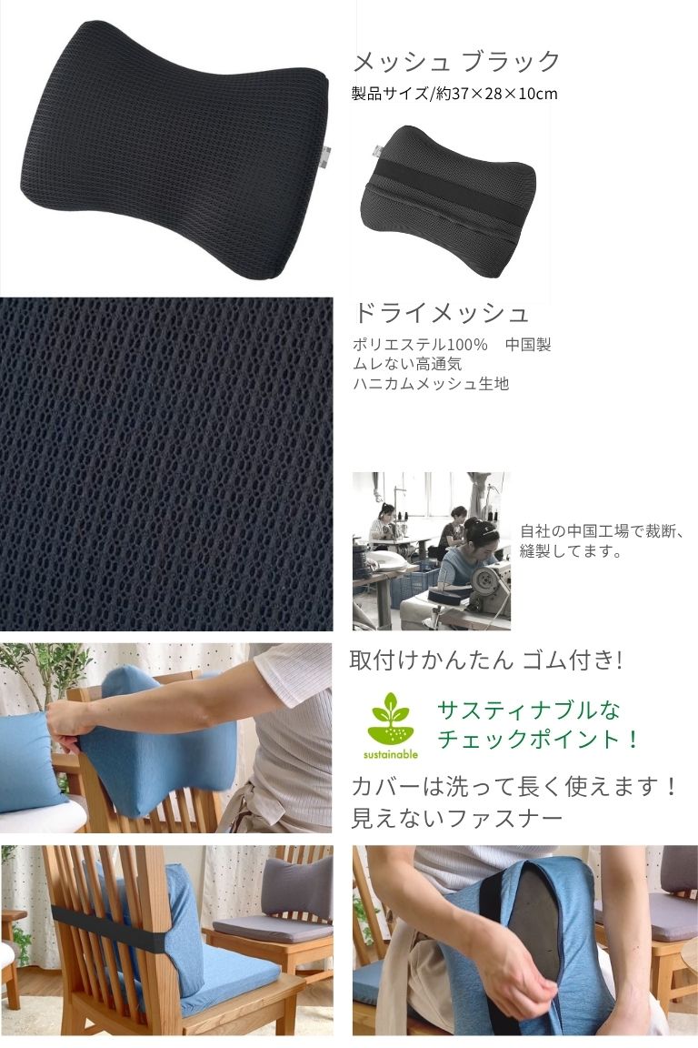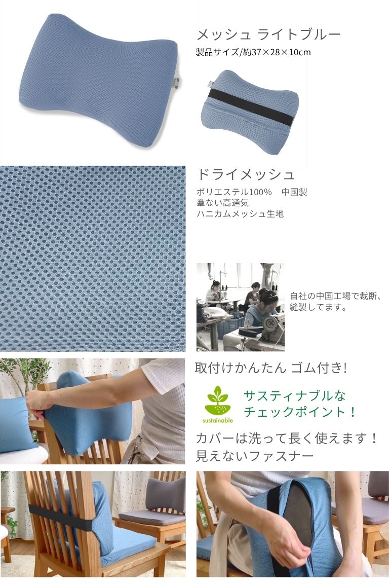 腰サポート 低反発ウレタン 37×28×10cm さらさら ドライメッシュ 高通気