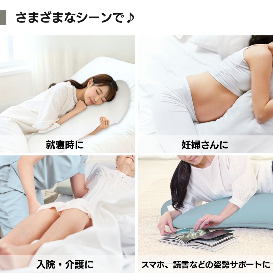 横向きの寝姿勢にしっかりフィット 安定させるS型形状の抱き枕です。抱きかかえて眠ることでリラックスし心地良い睡眠でストレスを解消できます。お好みによってSの向きを変えてご利用になれます。