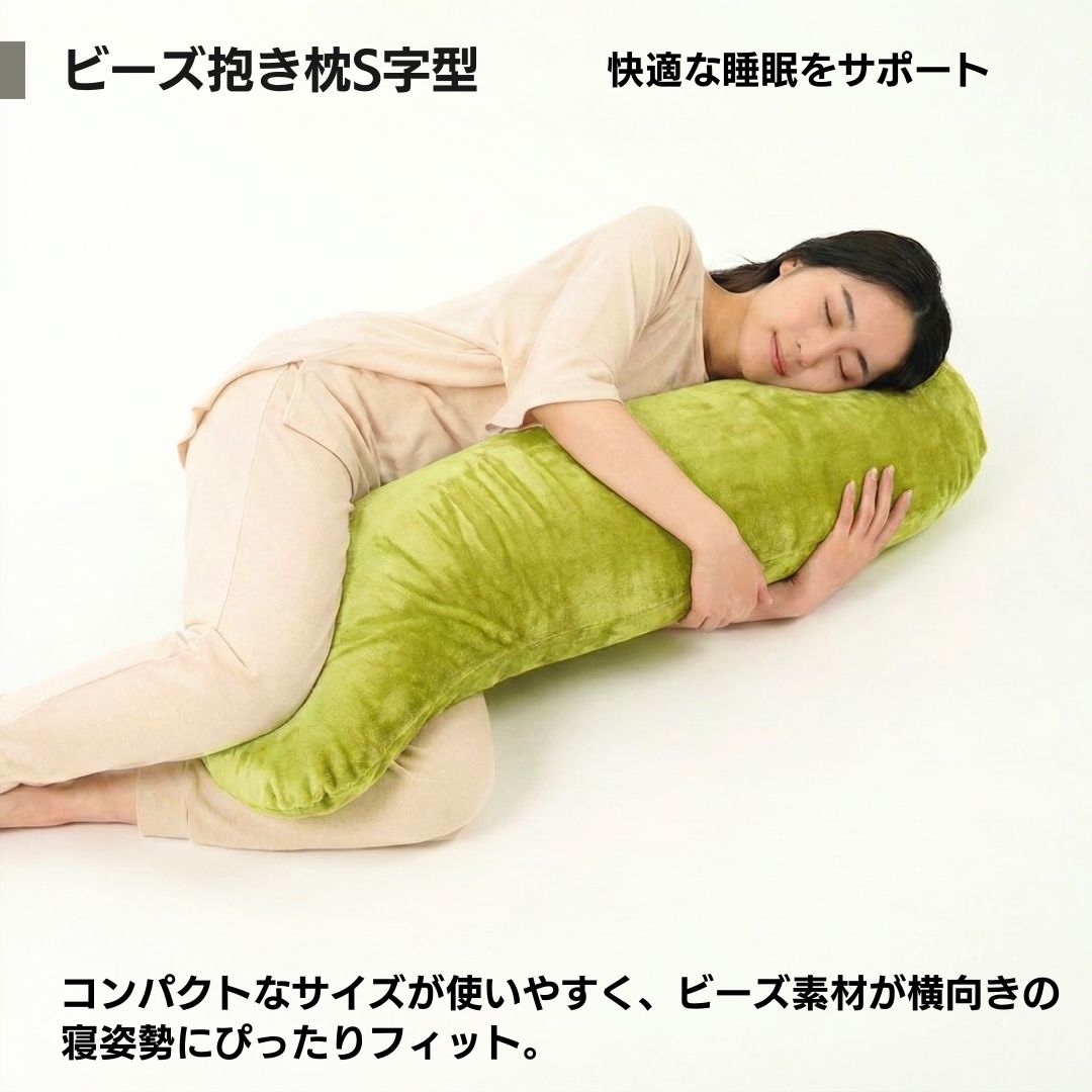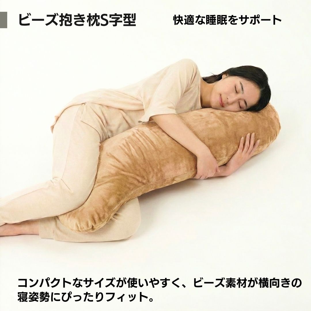 金鵄 ビーズ抱き枕 S型 長さ115x直径20cm もちもちフィット ふわふわフランネル モア