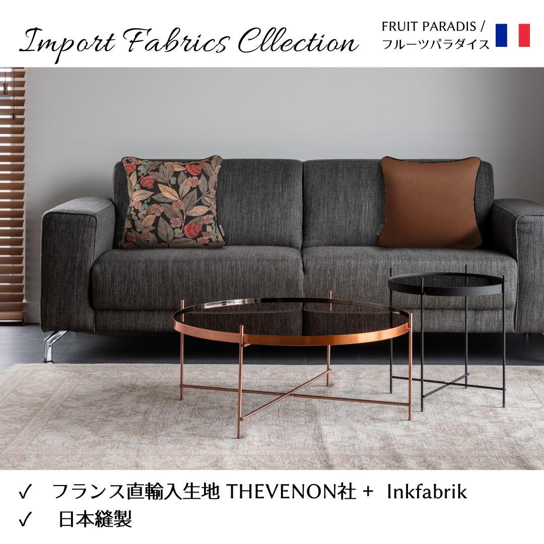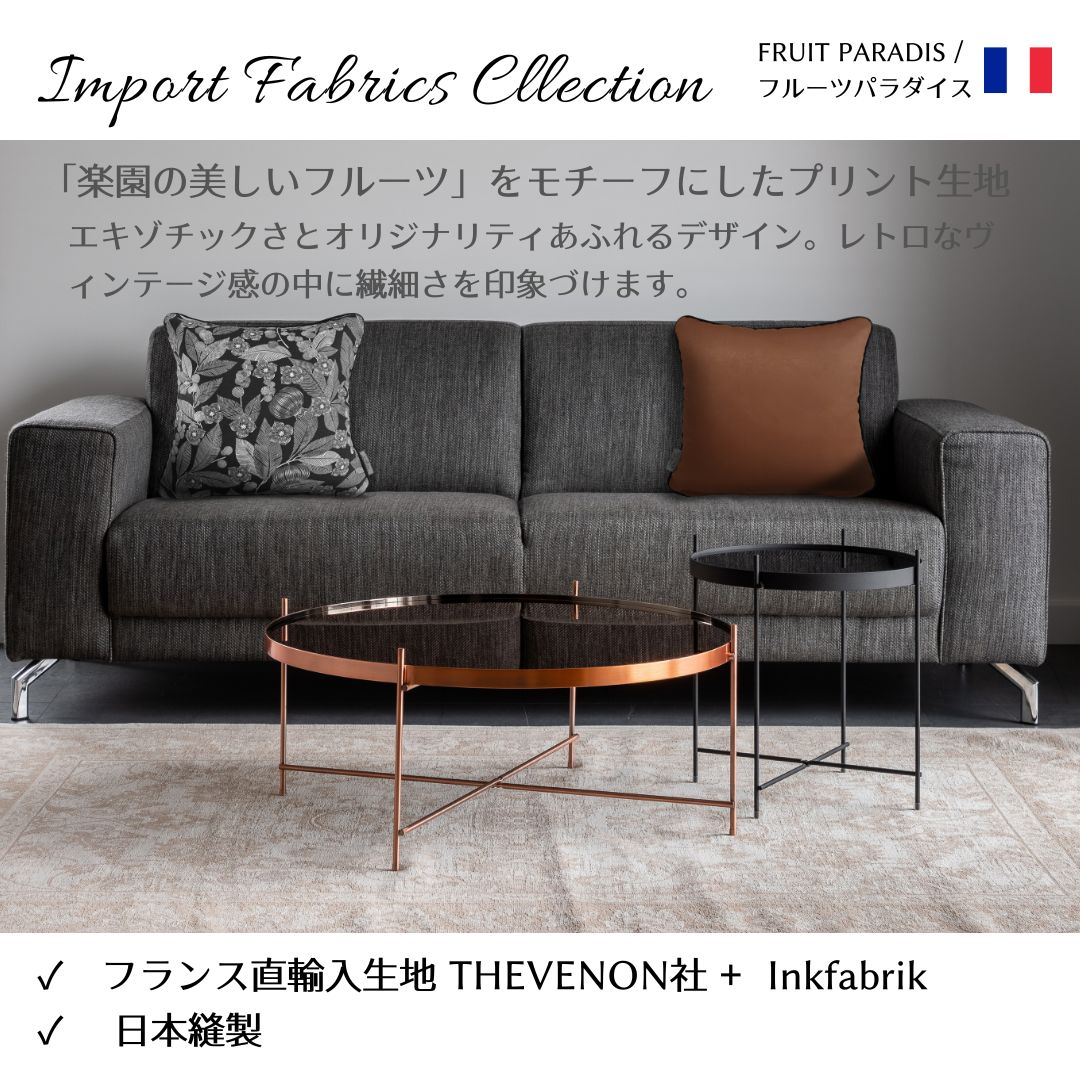 フランス「THEVENON」社のプリント生地を岡山の自社工場で縫製してます。