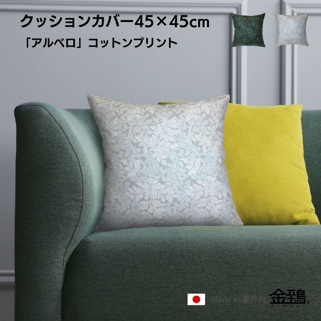 金鵄 クッションカバー 45x45cm 純日本製 コットンプリント 綿100% アルベロ