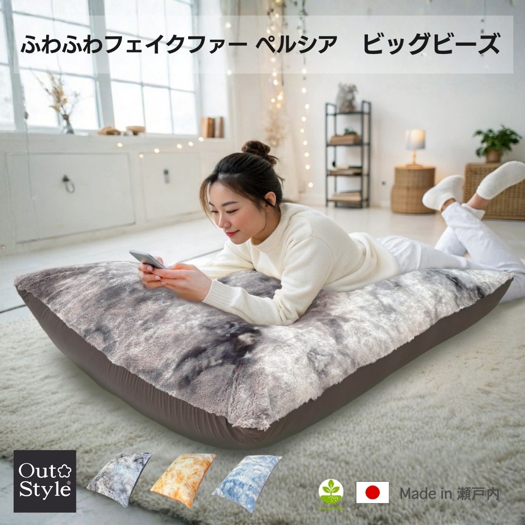 Out Style ヘタリにくい ビーズクッション ビッグ 特大 日本製 発泡ビーズ 補充可 洗えるカバー 95x125x25cm フェイクファー ペルシア