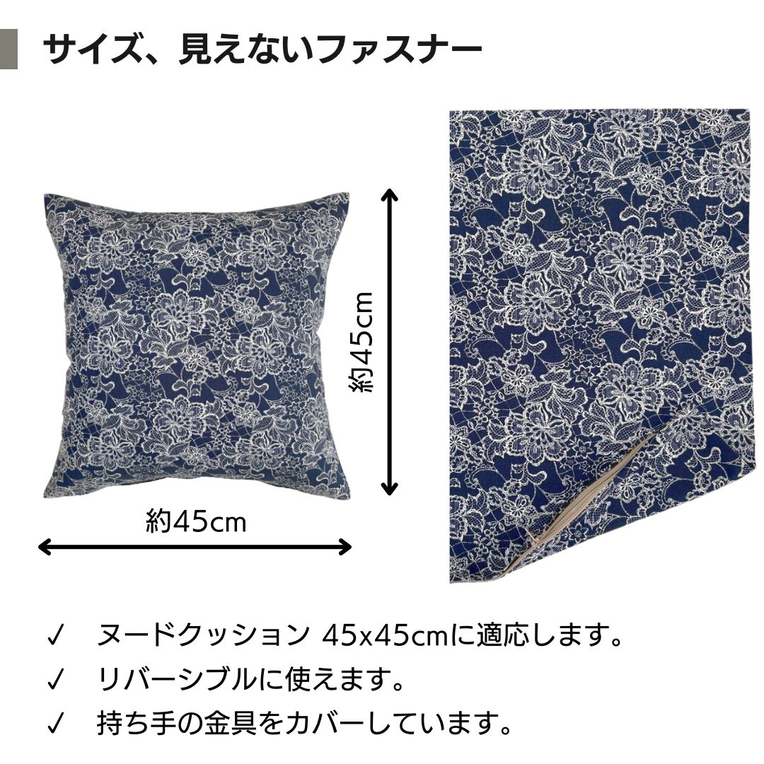 日本製の綿プリント生地で作った、ヌードクッション45x45cm用のクッションカバーです。