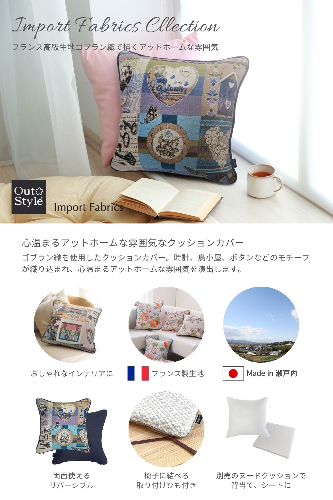 Out Style クッションカバー インポー 45x45cm 輸入生地 花柄 フランス ゴブラン織り スイートホーム