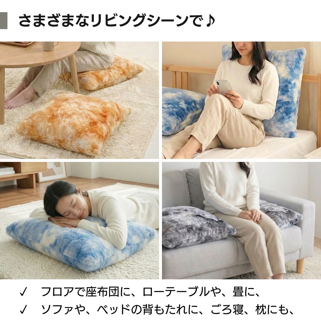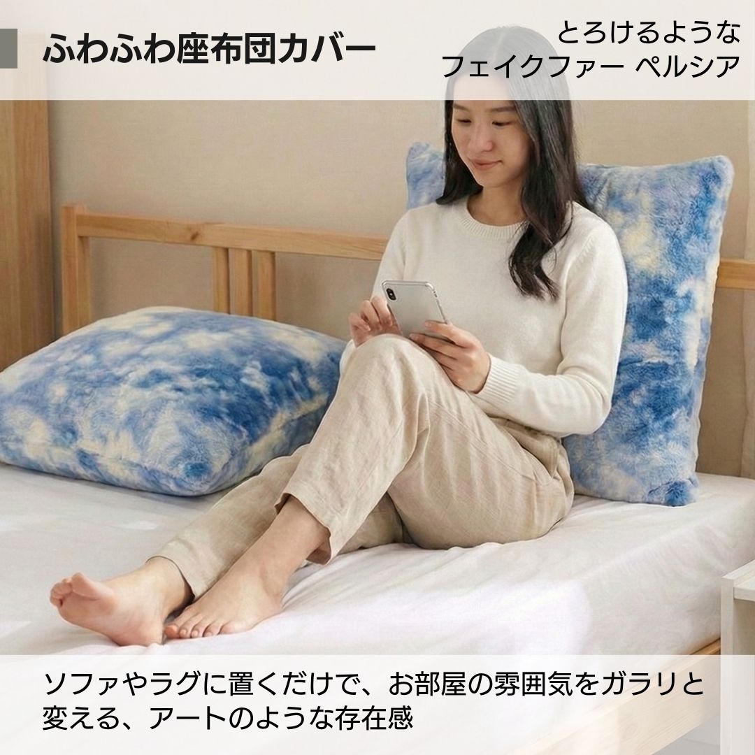 【極上の肌触り】とろけるようなフェイクファー座布団カバー | クッションカバー | 雲柄・マーブル柄 | 北欧・モダン・和室対応