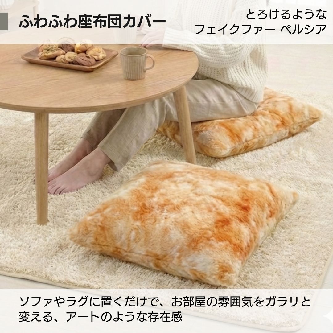 お部屋の雰囲気をガラリと変える、アートのような存在感。 触れた瞬間、指先が吸い込まれるような高密度のフェイクファーを使用した座布団カバーです。