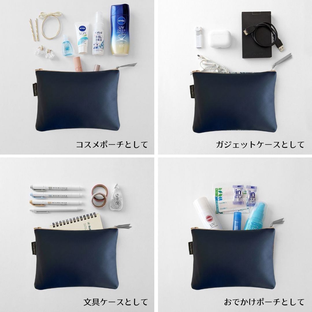 【アップサイクル】上質ソフトレザーで作る大人の万能ポーチ/日本製