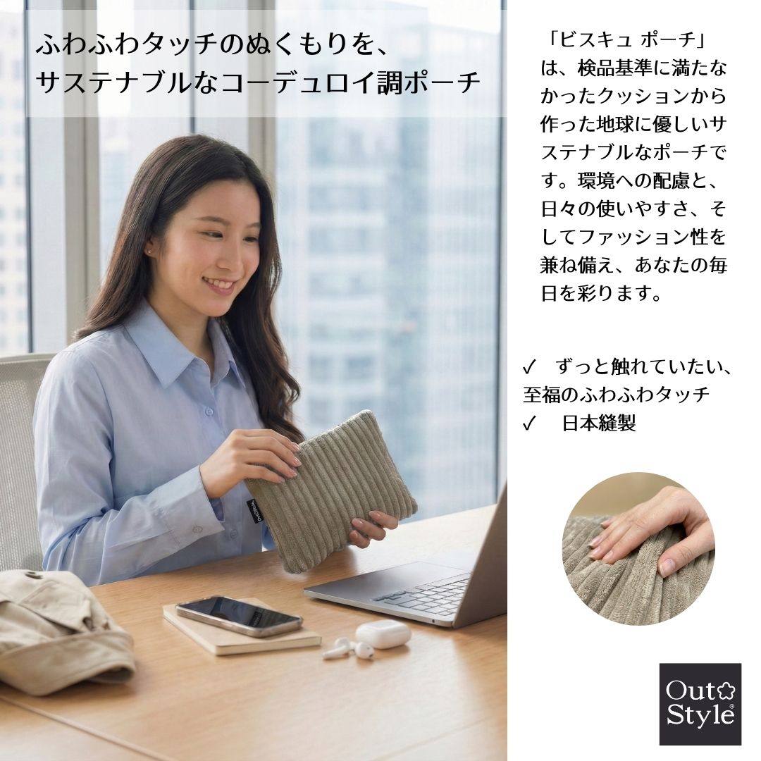 サステナブルなコーデュロイ調ポーチ「ビスキュ ポーチ」