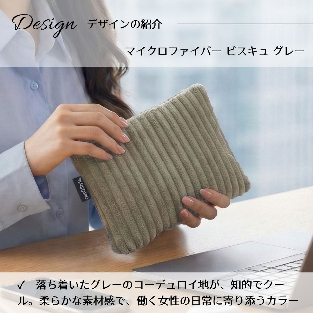 ■ ずっと触れていたい、至福のふわふわタッチ 表地には、まるで焼きたてのビスケットのように温かみのある、コーデュロイ調マイクロファイバー生地を使用。思わず頬ずりしたくなるような、ふんわりと柔らかく、なめらかな肌触りが特徴です。