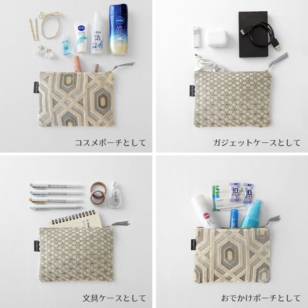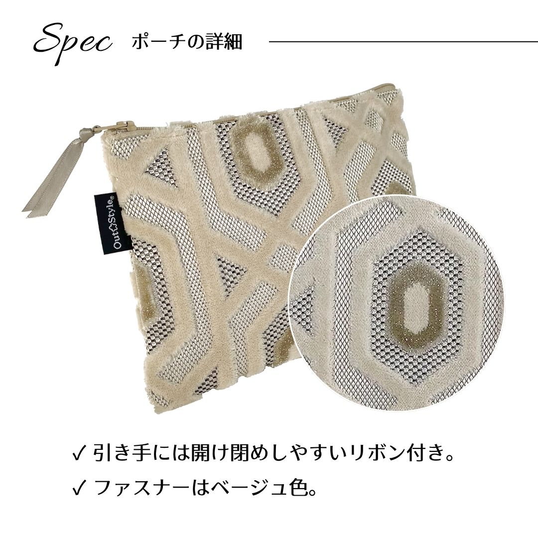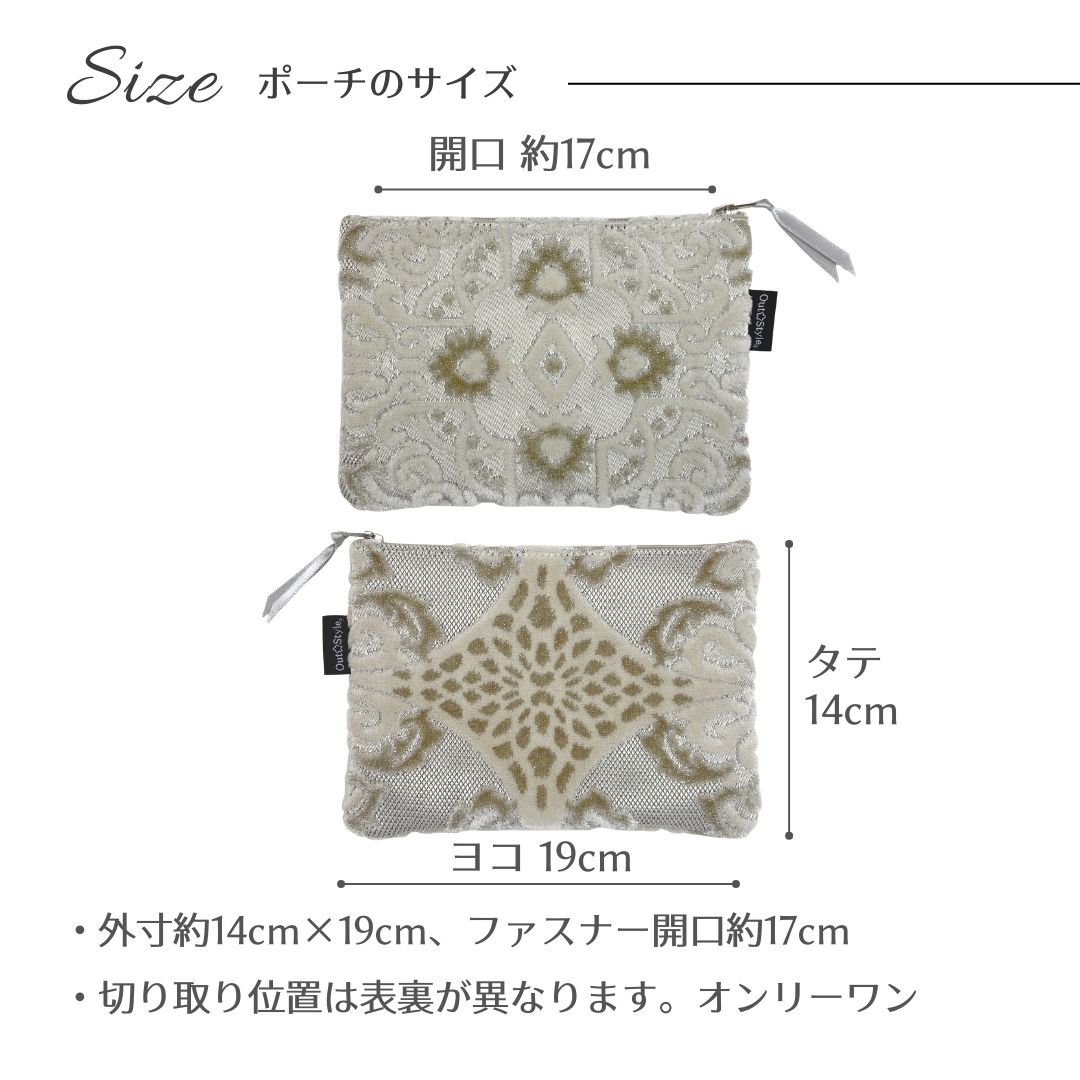 豪華で高級感のあるベルベットジャガード生地を使用したポーチ。