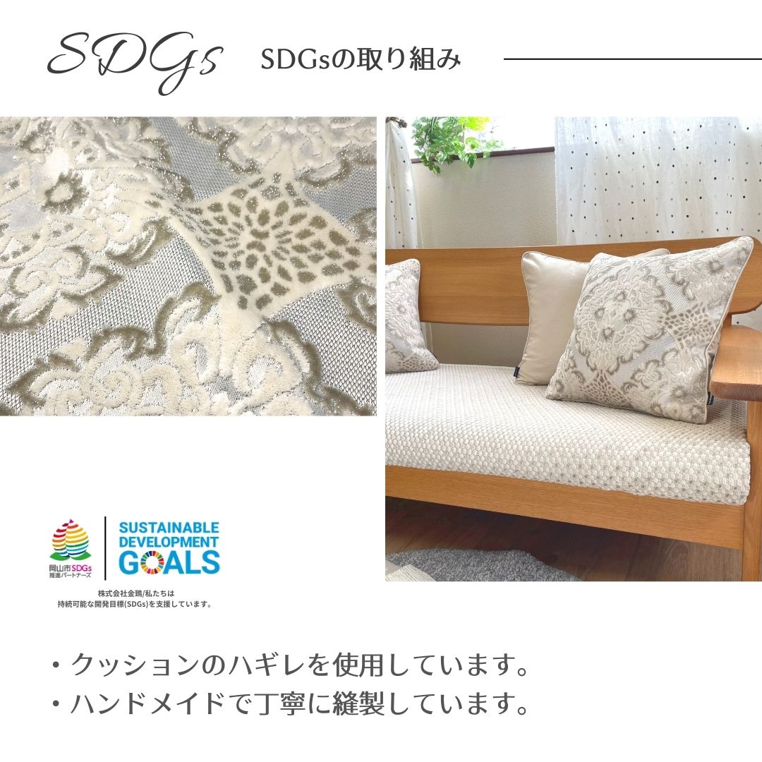 クッションカバーを作る際に出るハギレを再利用した、地球に優しいSDGs商品です。