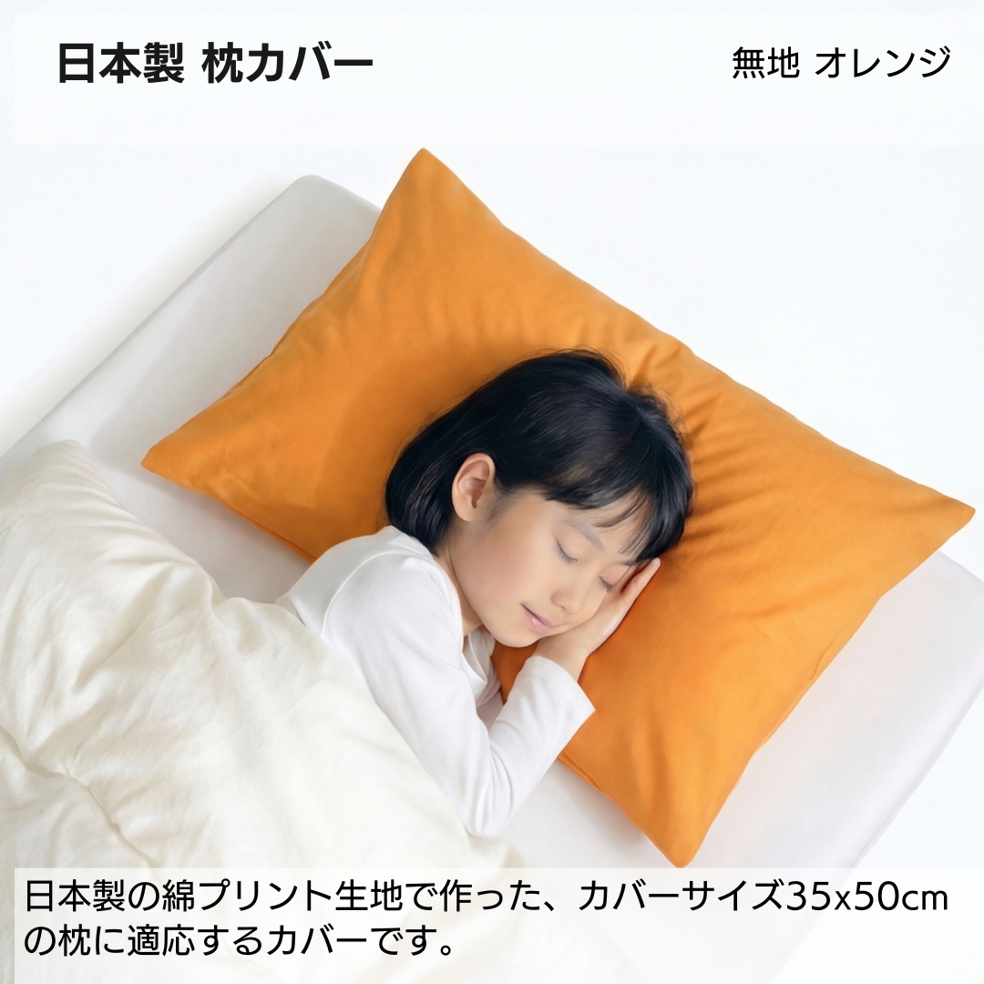 日本製 綿100% 枕カバー 無地カラー Sサイズ (35×50cm) ファスナーなし 合わせ式