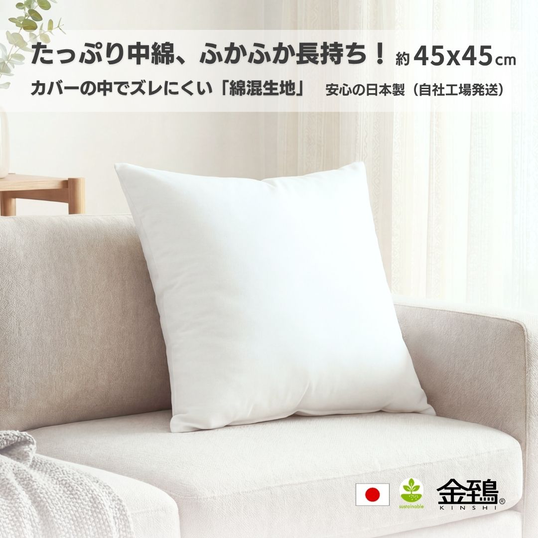 通常サイズのクッションや枕にぴったりのMサイズをお届けします。