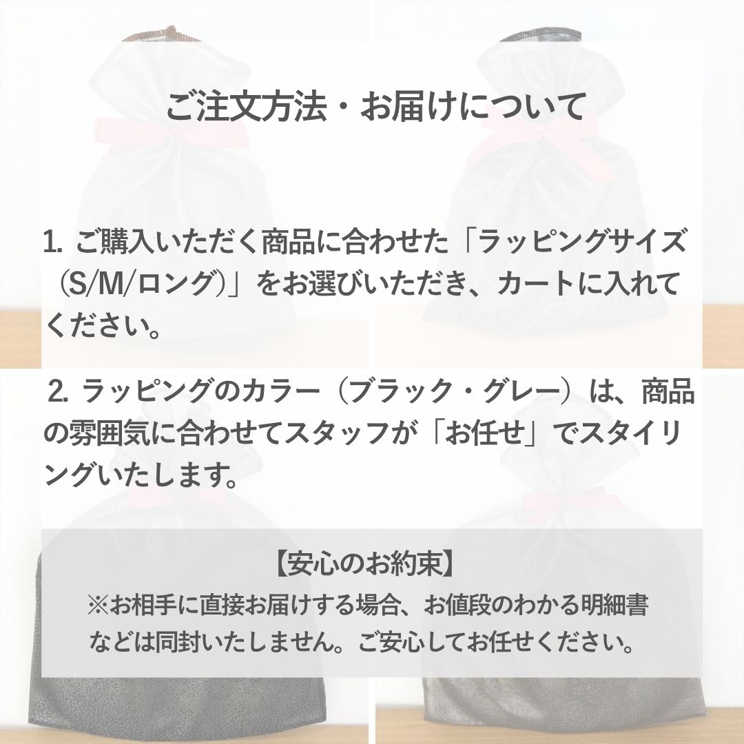 | 注意事項 | ※ラッピングのカラー(ブラック・グレー)は、商品に合わせてスタッフがお選びいたします(お任せ)。 ※ご注文いただいた商品がラッピング袋に収まらない場合は、事前にご相談させていただく場合がございます。 |
