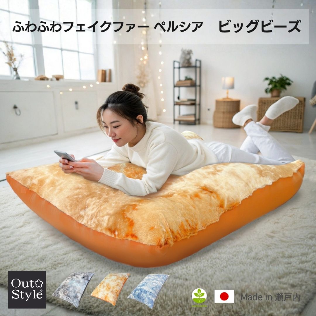 Out Style ヘタリにくい ビーズクッション ビッグ 特大 日本製 発泡ビーズ 補充可 洗えるカバー 95x125x25cm フェイクファー ペルシア