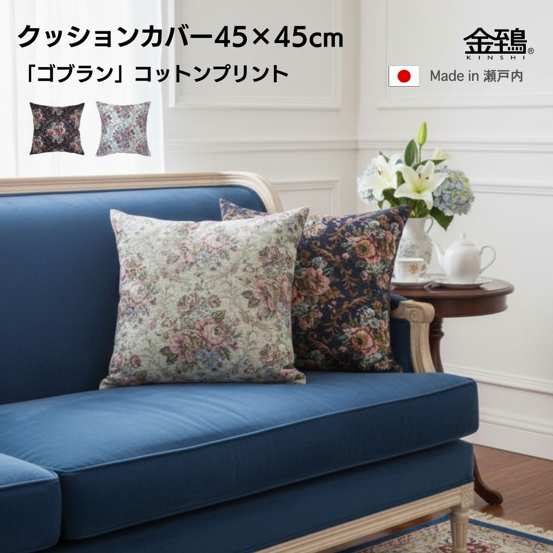 金鵄 クッションカバー 45x45cm 純日本製 コットンプリント 綿100% ゴブラン