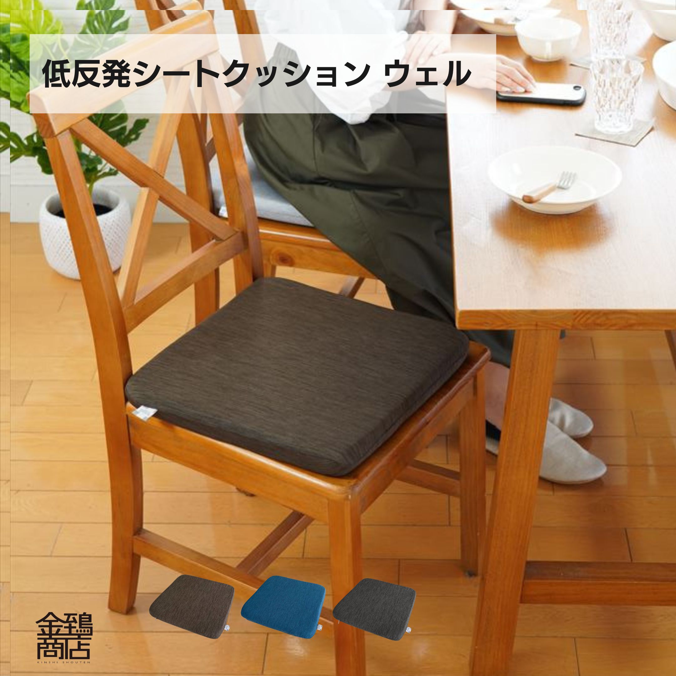 金鵄 シートクッション 座布団 40x40x3cm 低反発 さっぱりニット ウェル