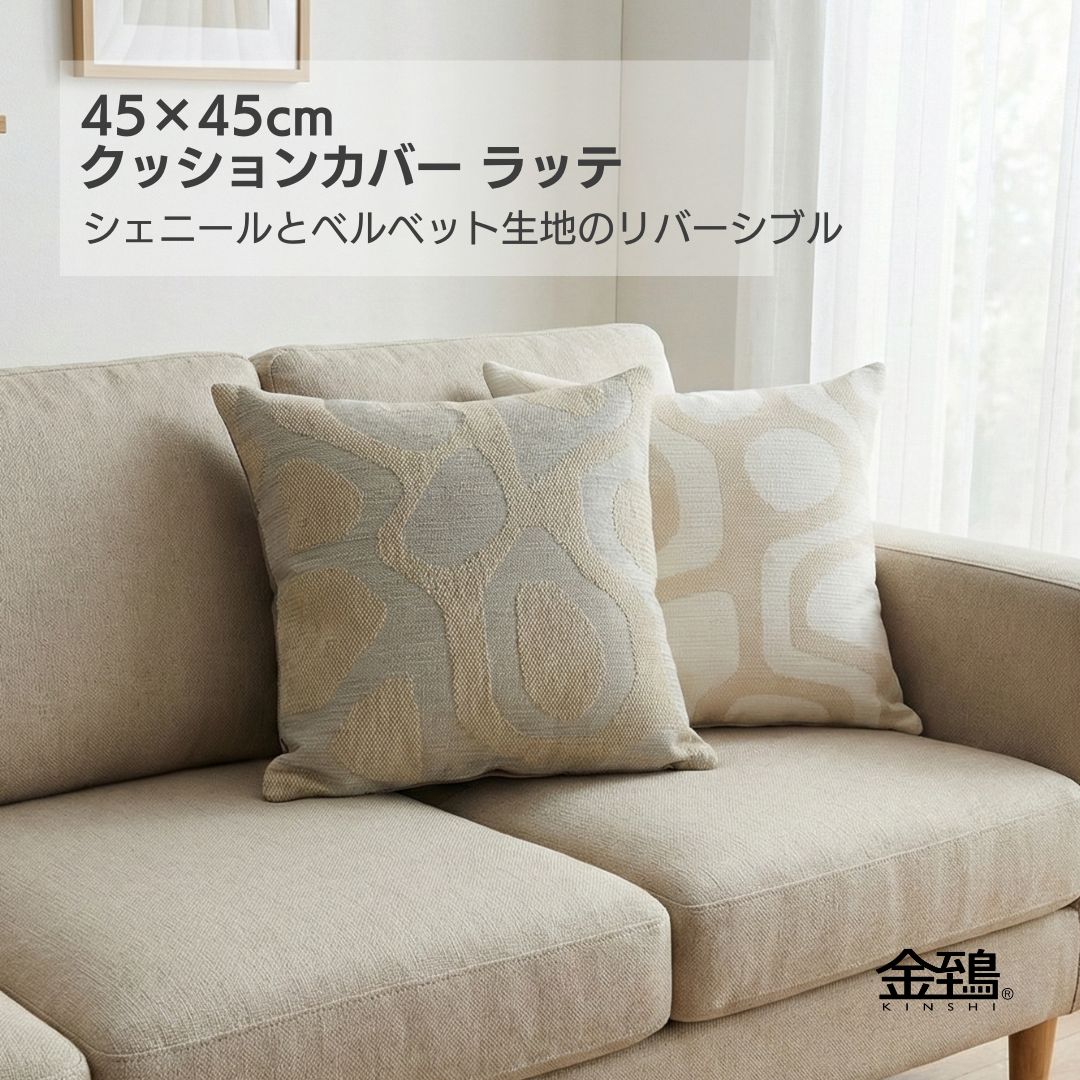 金鵄 クッションカバー 45x45cm ラッテ シェニールジャガード ベルベット リバーシブル 北欧幾何デザイン