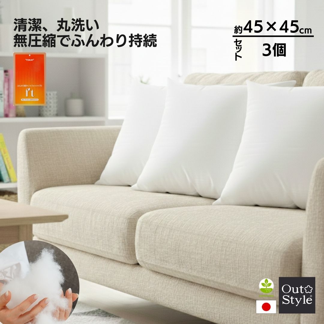 Ouy Style ヌードクッション 東レ テトロン FT お得な4個セット クッションカバー 45x45cm用 丸洗い 背当て 日本製 高反発
