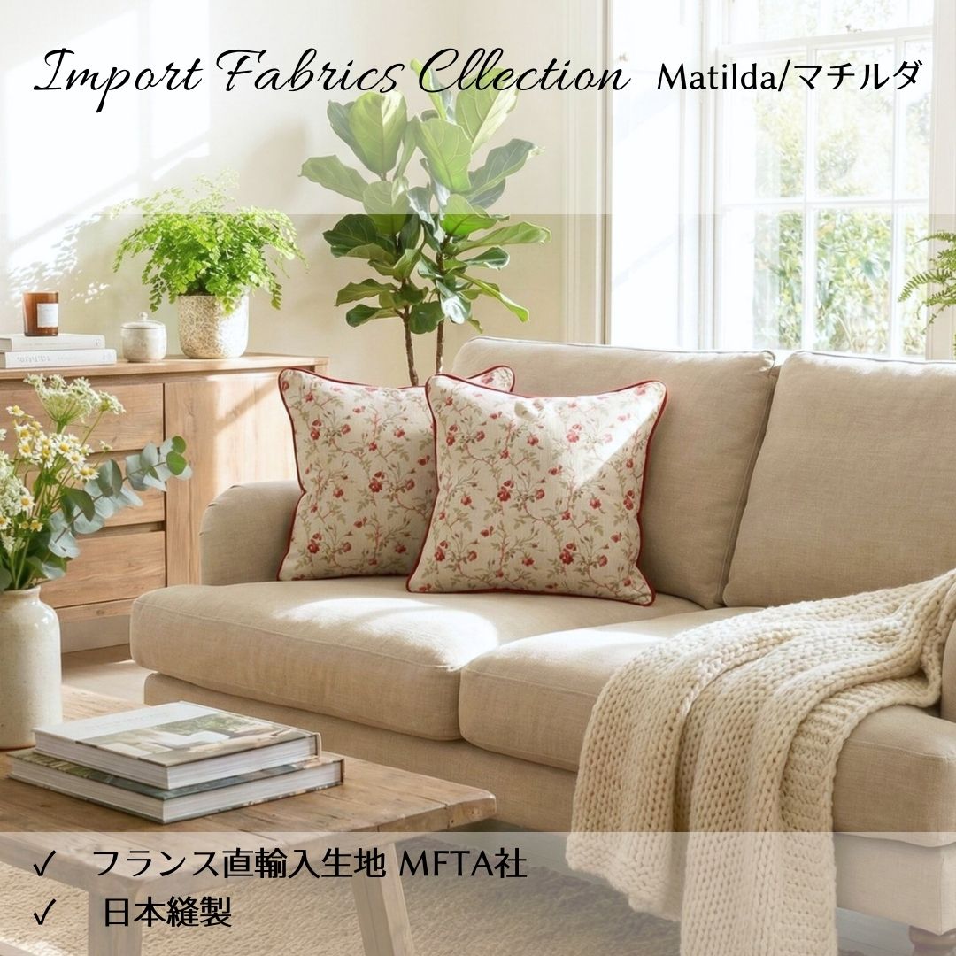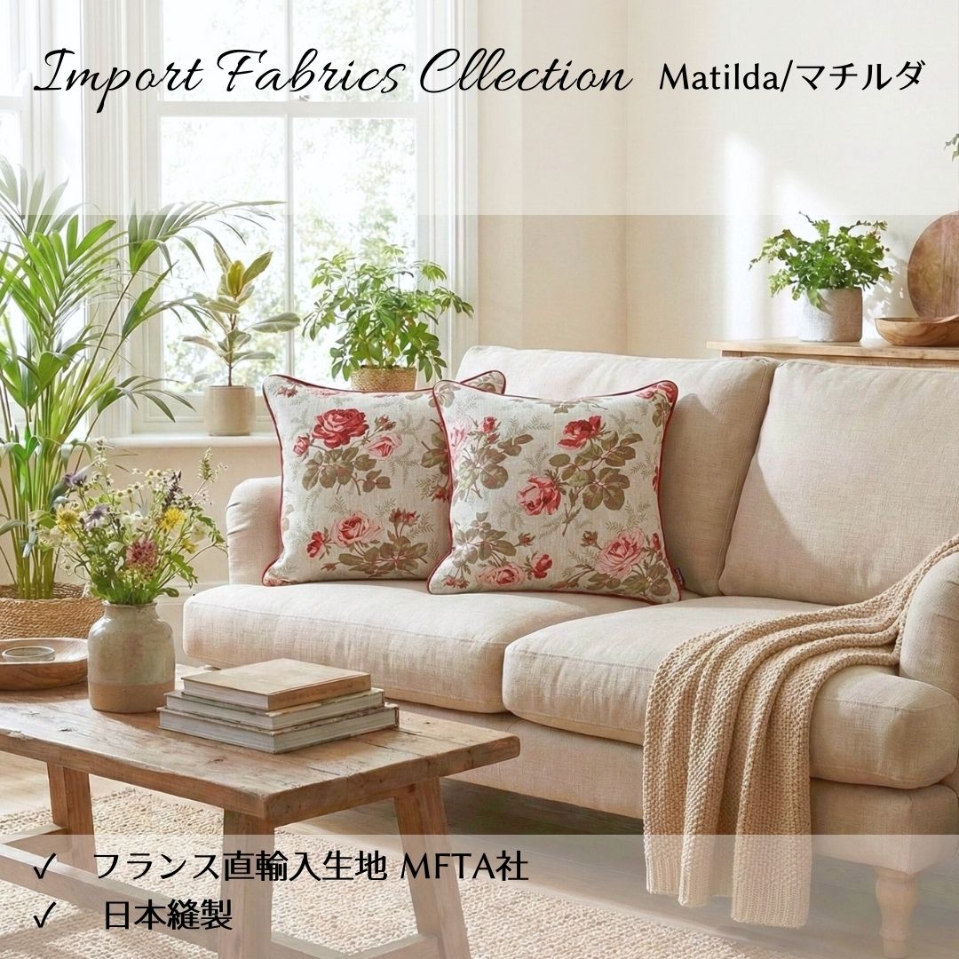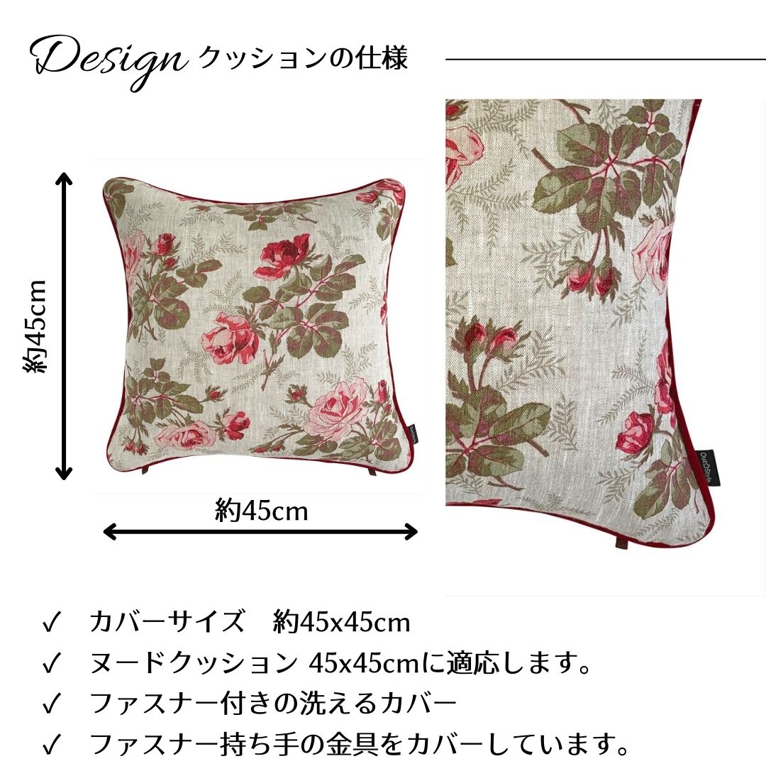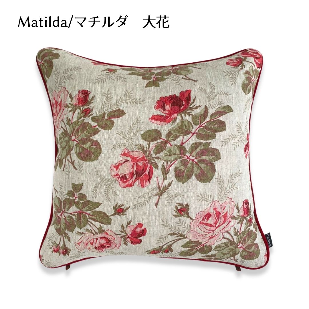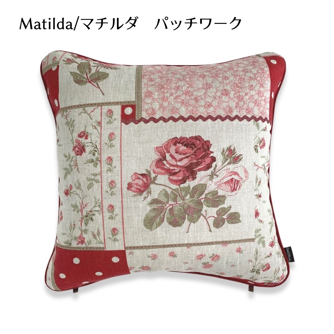 Out Style クッションカバー 45x45cm 輸入生地 花柄 フランス リネンプリント マチルダ