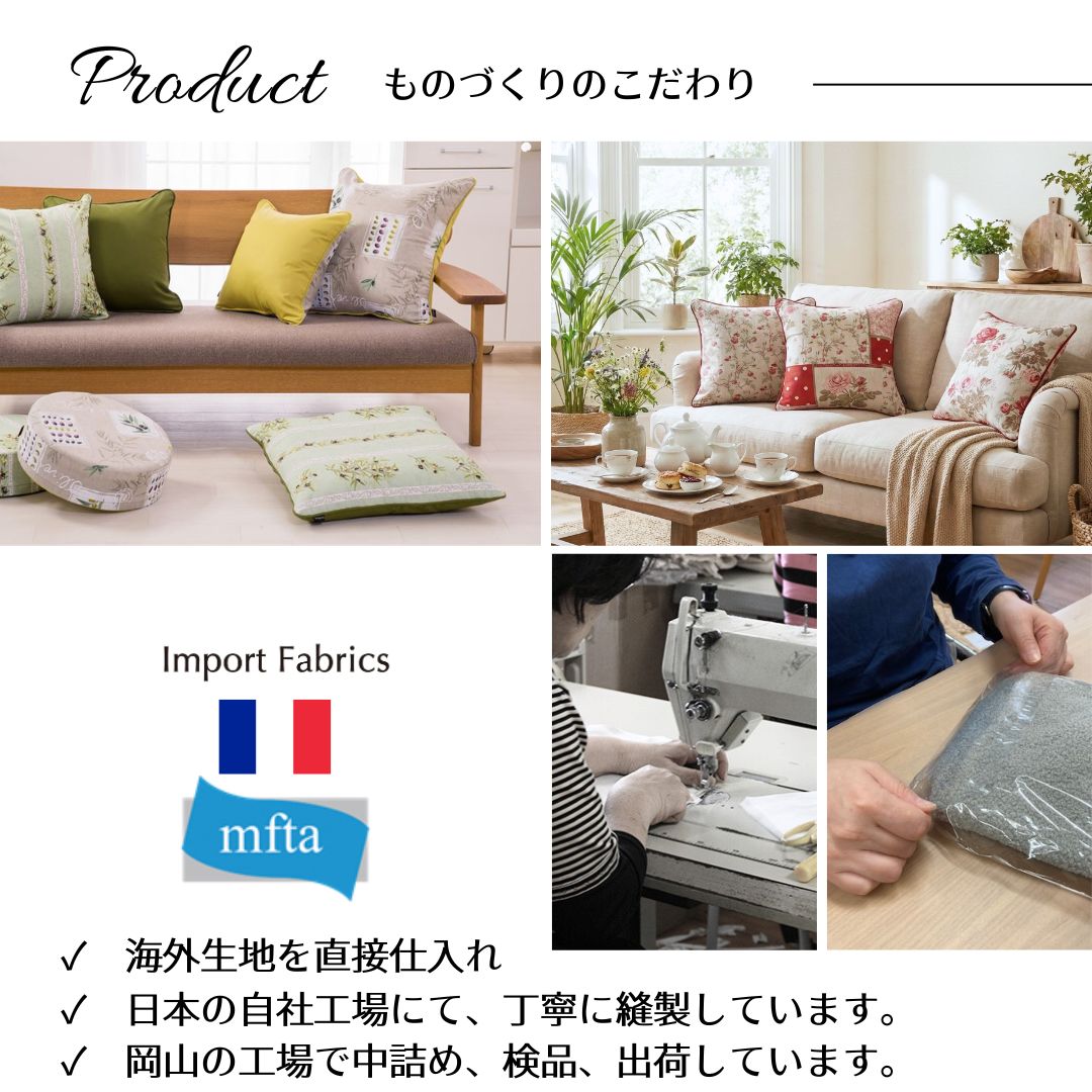 フランス「mfta」社のプリント生地を岡山の自社工場で縫製してます。