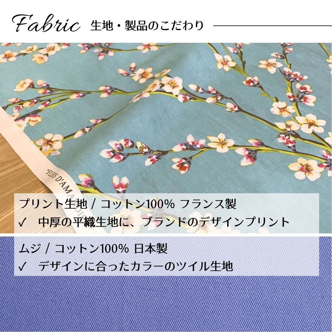 フランス「THEVENON」社のプリント生地を岡山の自社工場で縫製してます。