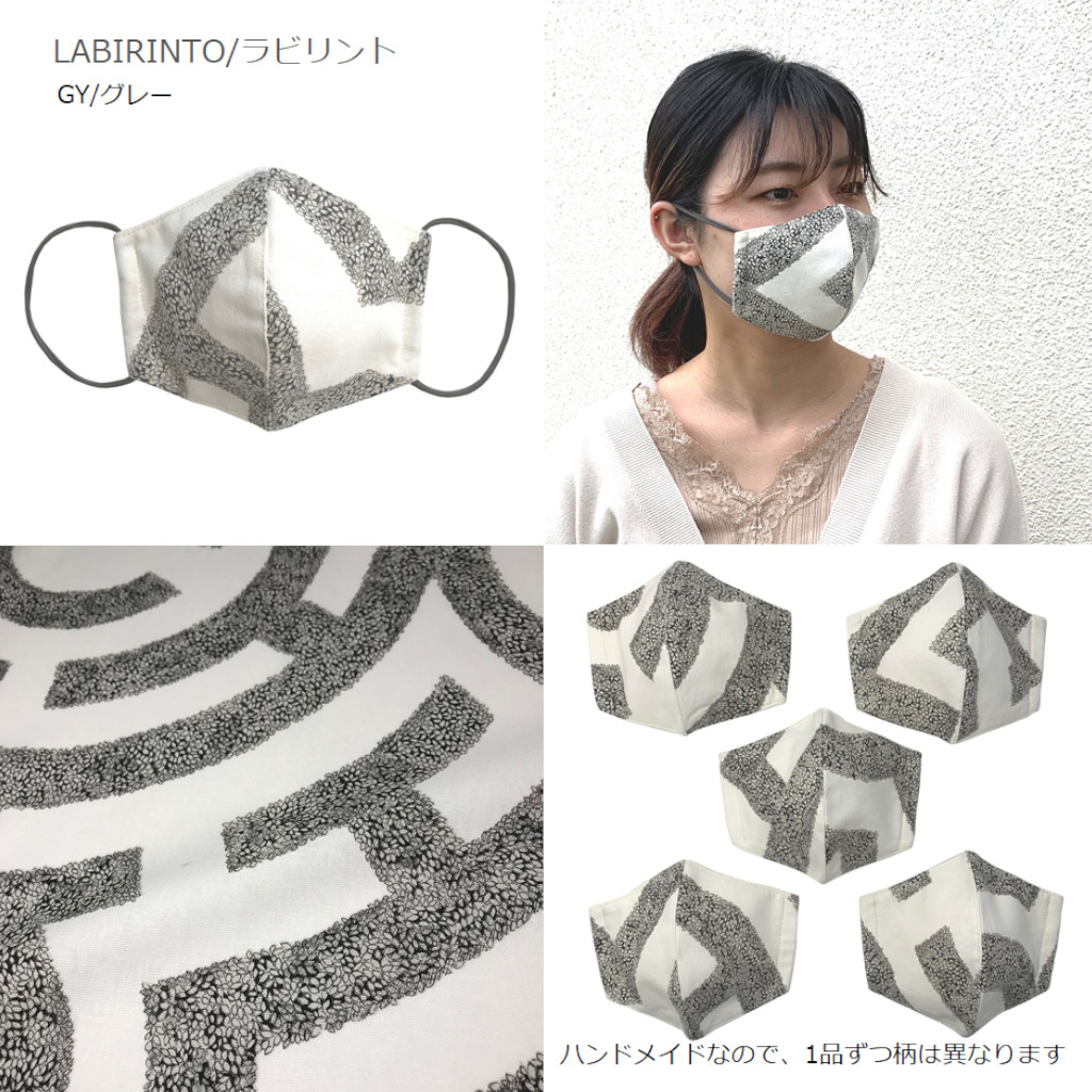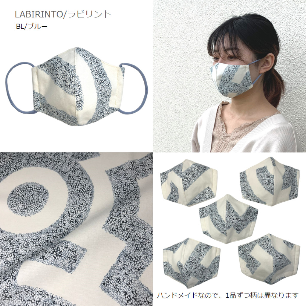 オフィシャルショップ限定販売!ハンドメイド デザイン マスク ラビリント フランス 輸入生地 おしゃれ 日本製 洗える 手づくり 綿 消臭 ニット