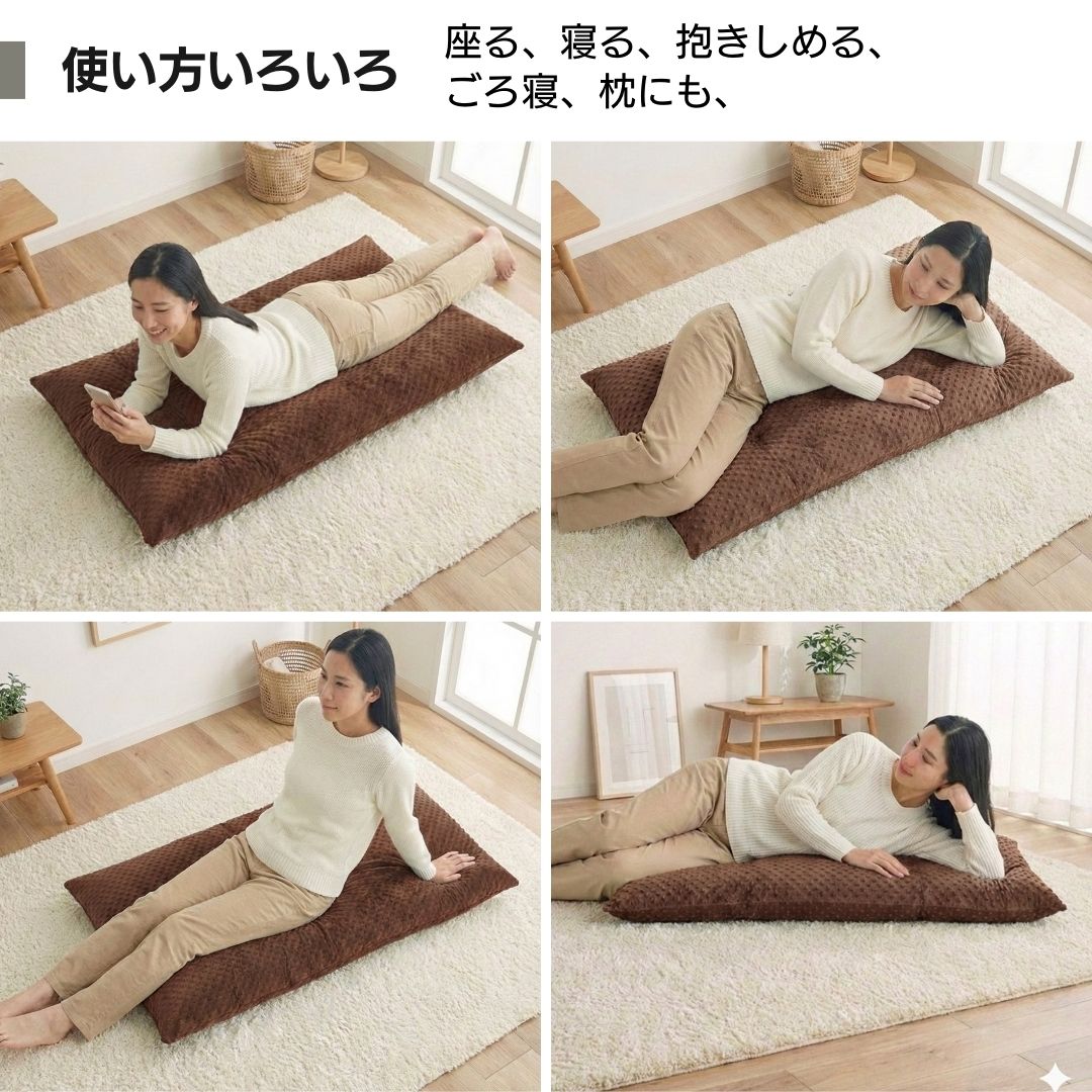 ・カーペットでごろ寝、ちょっとした仮眠やお昼寝に。座布団、長座布団として使用。