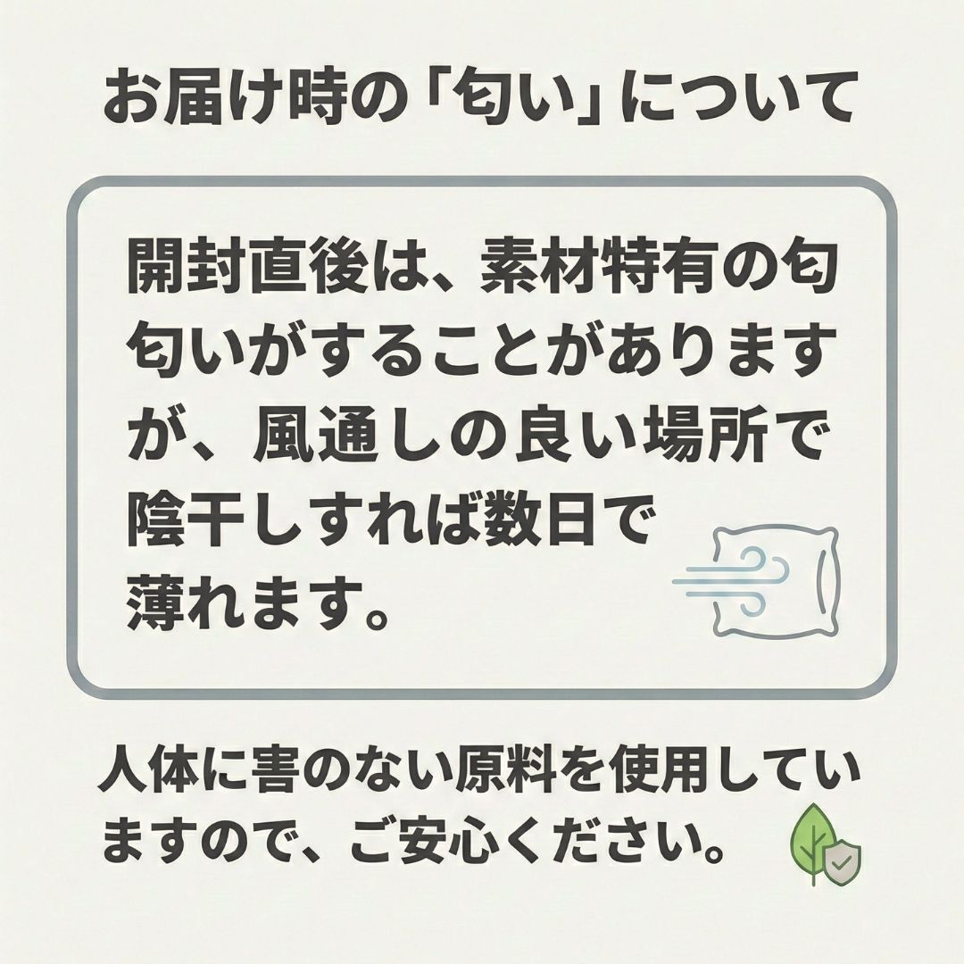 中身は粒が丸くて表面がツルツルな日本製発泡ビーズ(約0.9~1.5m/m)。ガサガサせず、優れた流動性で体にフィットします。きしむ音がしにくく、臭いが少ないのも特徴。岡山の自社工場で発泡し、丁寧に充填しています。
