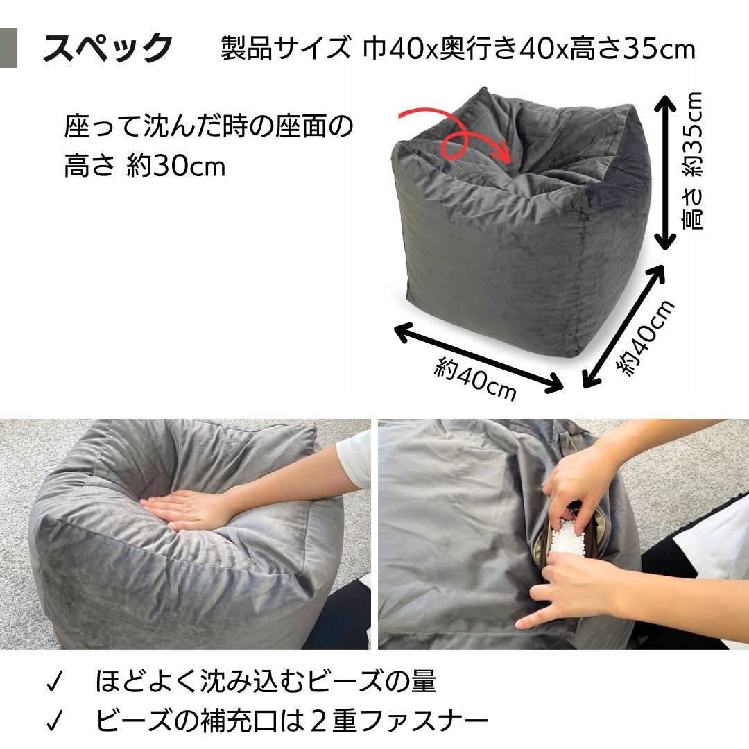 金鵄 ビーズクッション プフクッション 四角 日本製ビーズ ウレタンブレンド