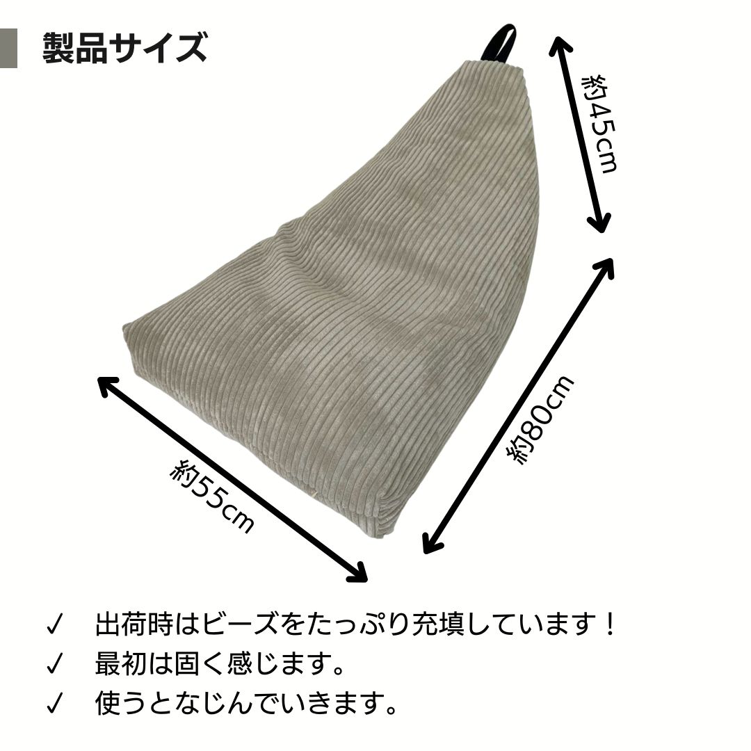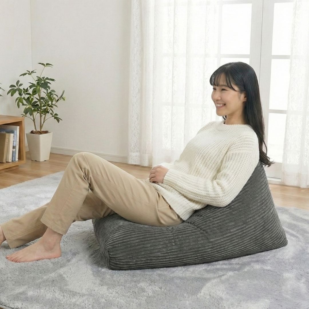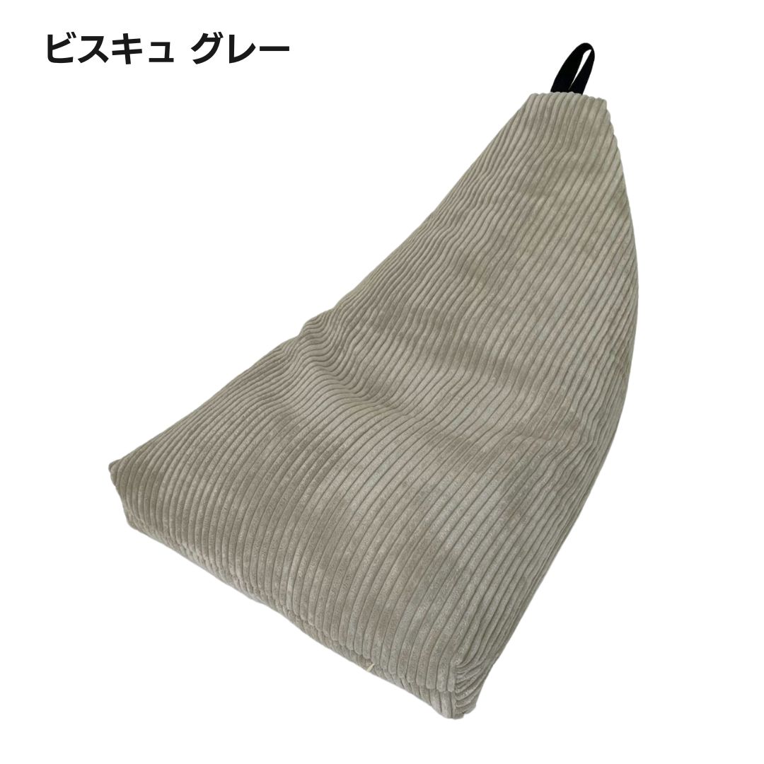 「ふわふわマイクロファイバー」を採用した三角形のビーズクッション。