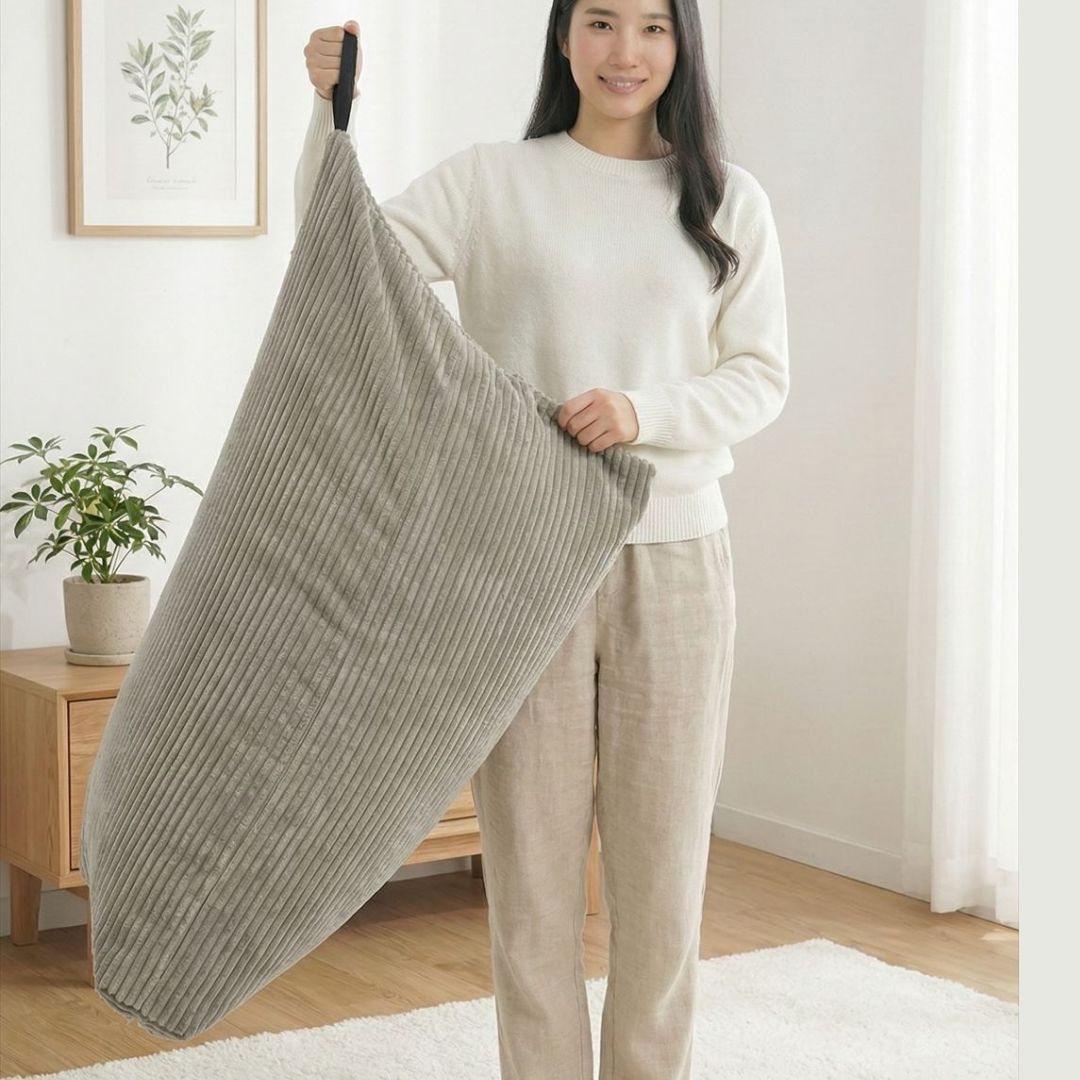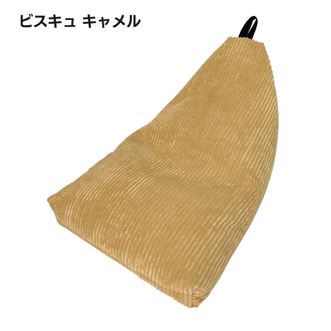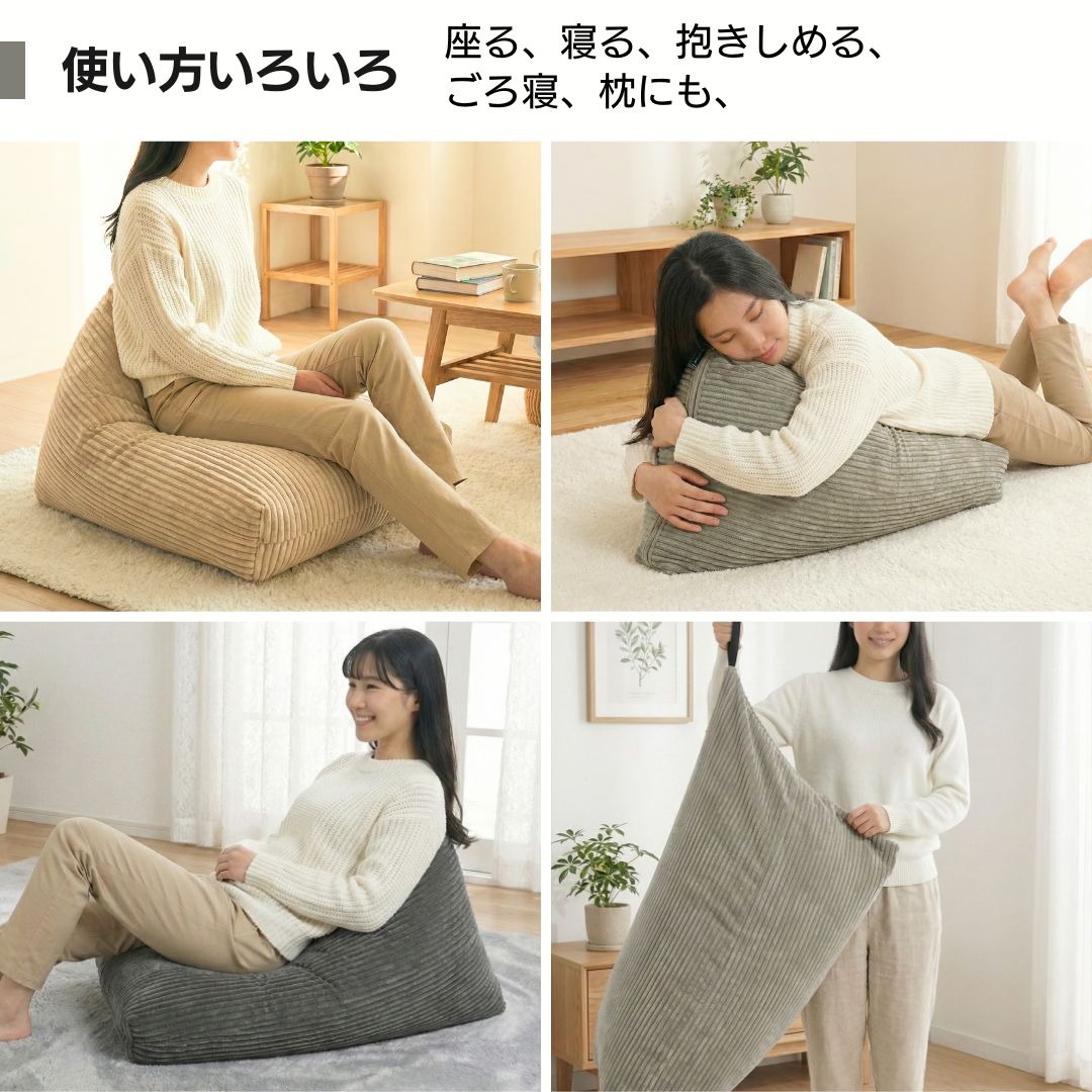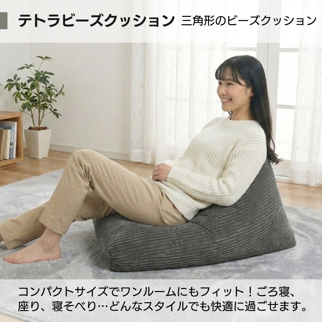 「ふわふわマイクロファイバー」を採用した三角形のビーズクッション。