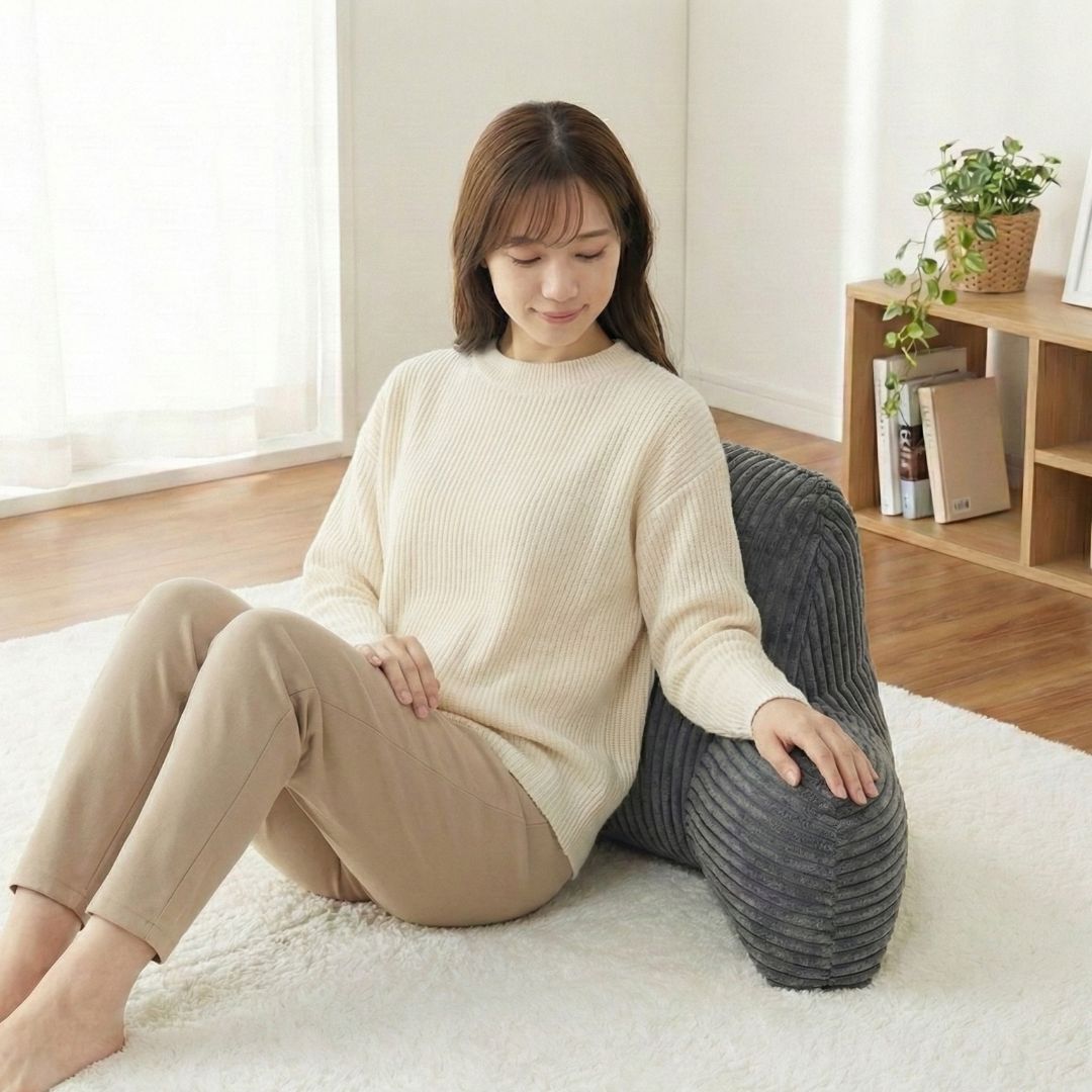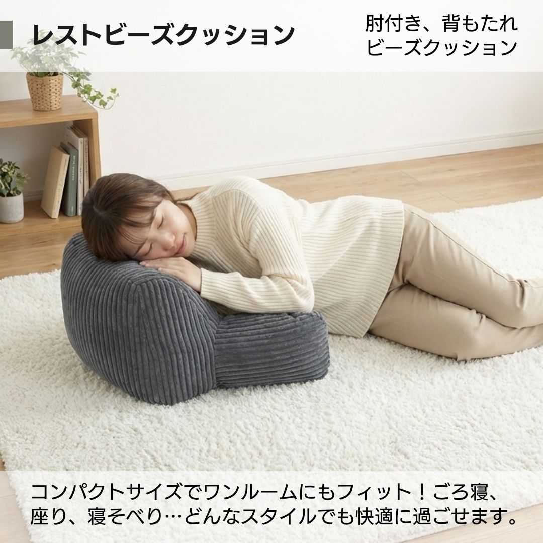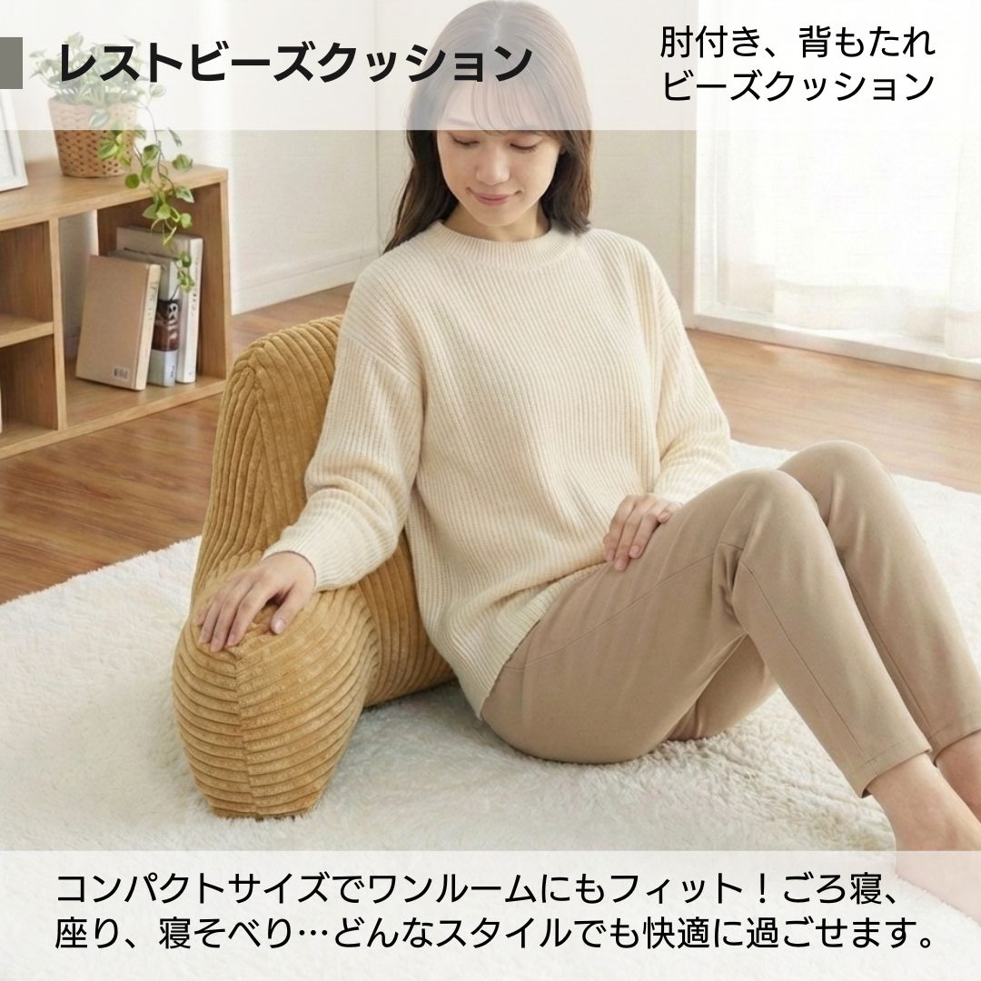 「自分時間を贅沢に、持ち運び自由な肘付きビーズクッション」