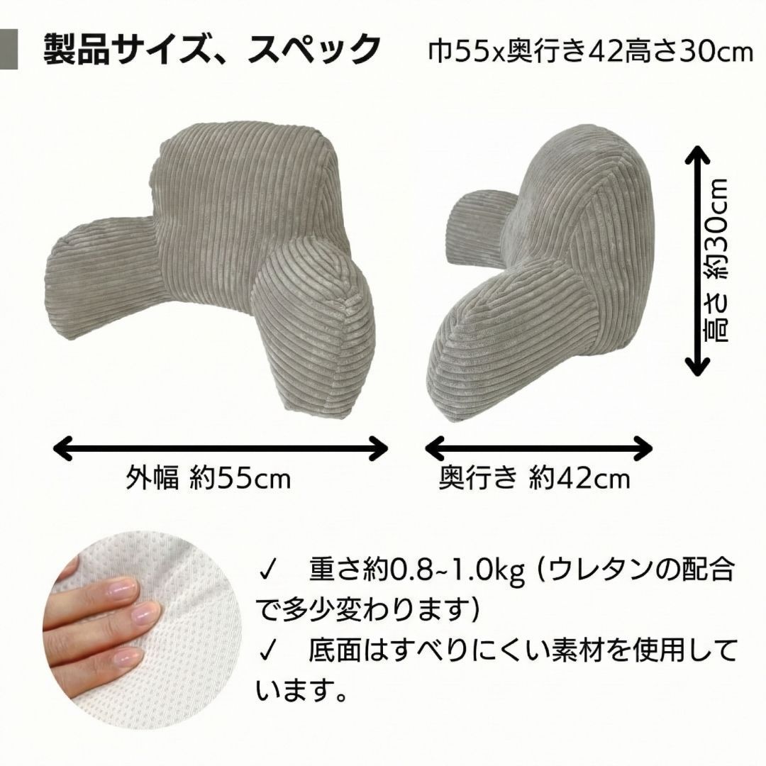 底面には滑り止め加工。背もたれに使用してもズレにくい安心設計です。