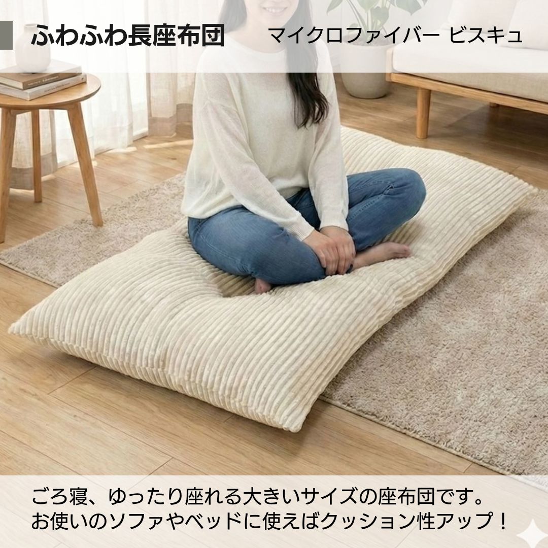 ビスケットにインスパイアされたマイクロファイバー素材の『ビスキュ長座布団』