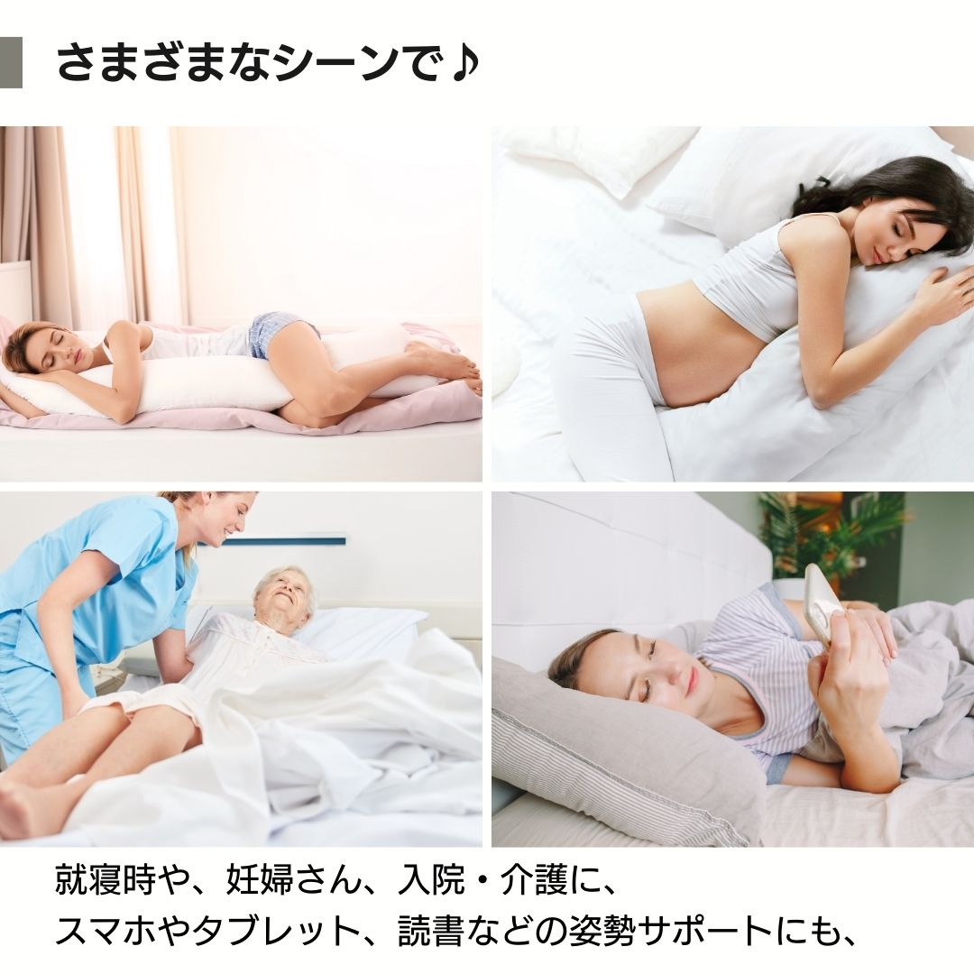 横向きの寝姿勢にしっかりフィット 安定させるS型形状の抱き枕です。