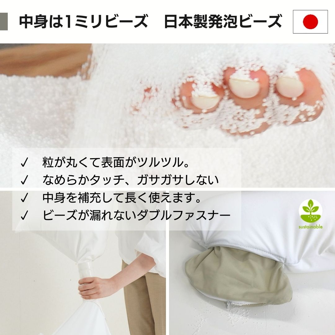 ※発泡ビーズは消耗品ですので、お使いになるとヘタりますのでご了承ください。ファスナー付きなので、中身のビーズを補充できます。