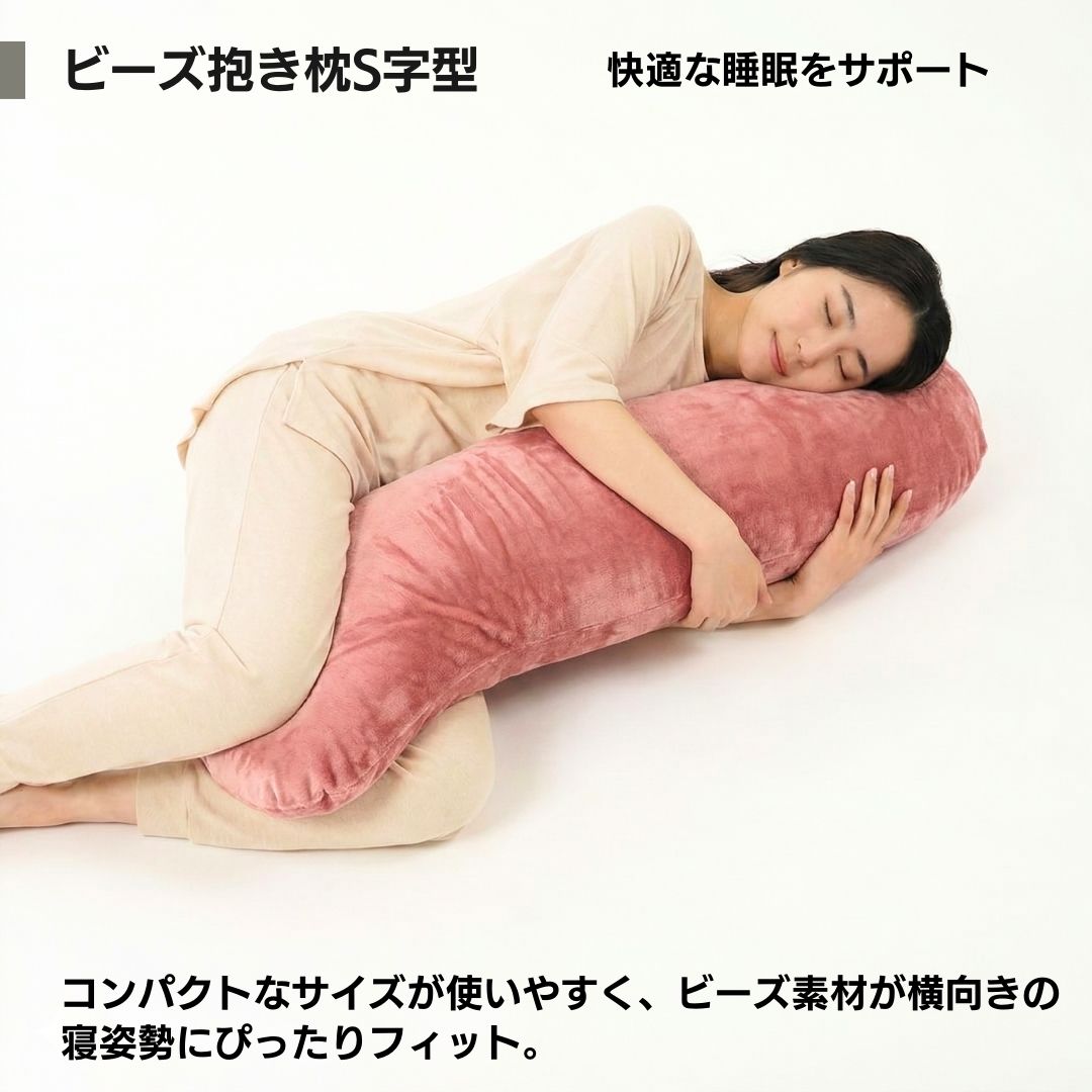 金鵄 ビーズ抱き枕 S型 長さ115x直径20cm もちもちフィット ふわふわフランネル モア