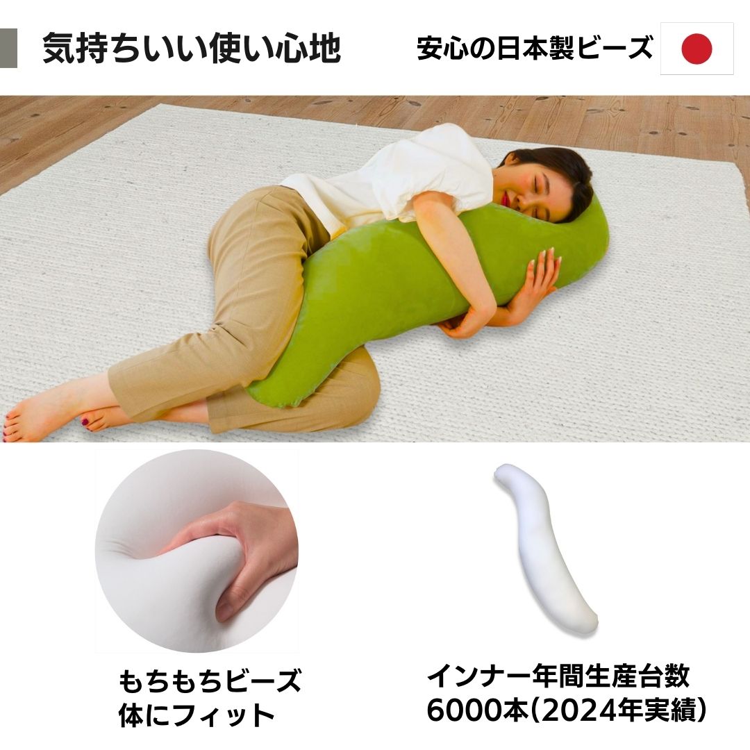 ビーズは日本製原料を使用しています。優れた流動性で身体にフィットします。ビーズのきしむ音がしにくく、臭いが少ないです。