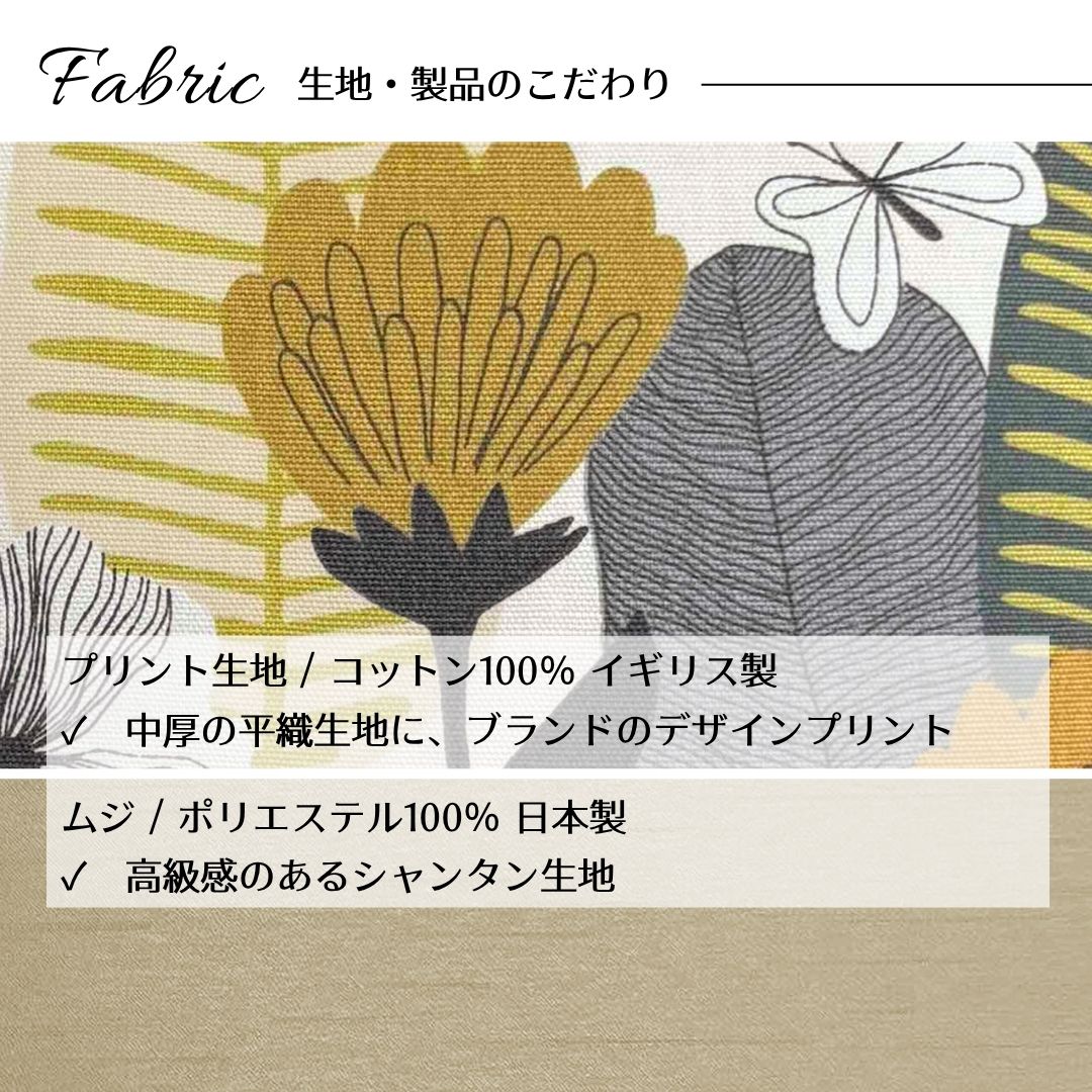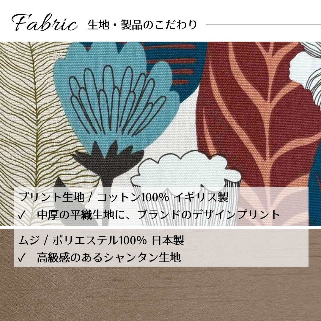 ●西欧のプリントは発色(色の美しさ)を第一に考えて作られているため、顔料プリントという手法で染めています。顔料プリントは、色が美しく表現できる反面、色移り、色落ちには弱い特性があります。白い椅子やソファ、衣類でのご使用、長時間の直射日光のあたる場所でのご使用の際は色落ち、色移りの可能性がありますので、ご注意、ご了承ください。