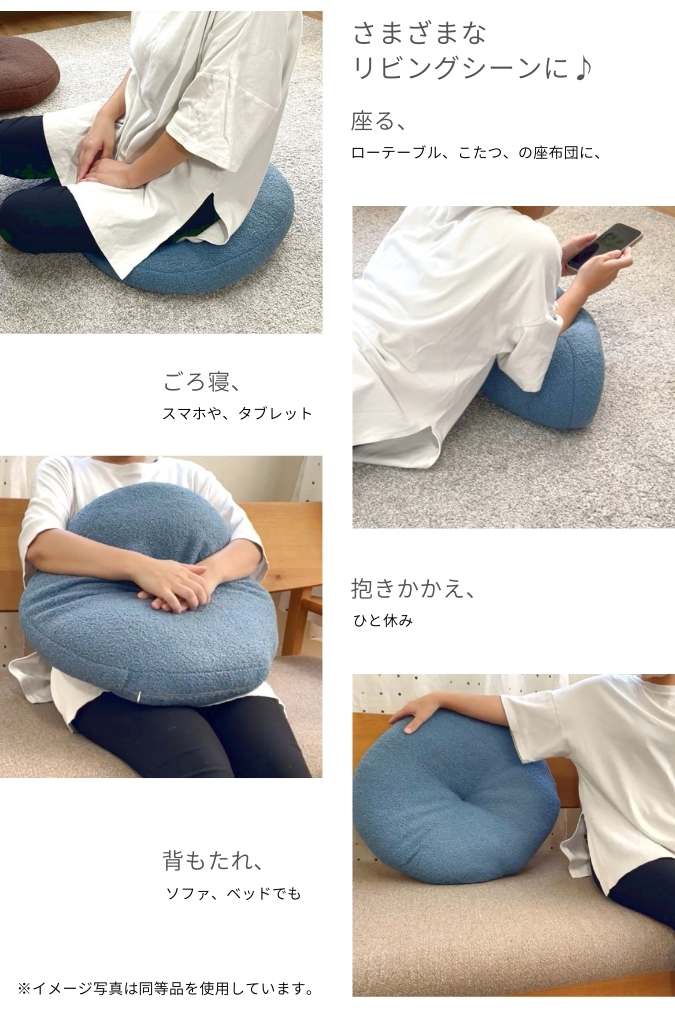座ったり、抱きかかえたり、枕にしたり、丸型で大きいサイズ、厚手の座布団です。
