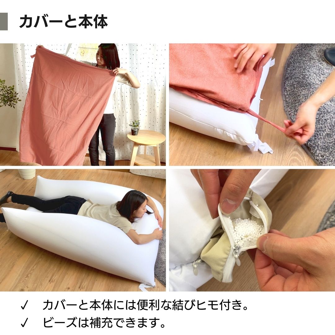 ※発泡ビーズは消耗品ですので、お使いになるとヘタりますのでご了承ください。ファスナー付きなので、中身のビーズを補充できます。