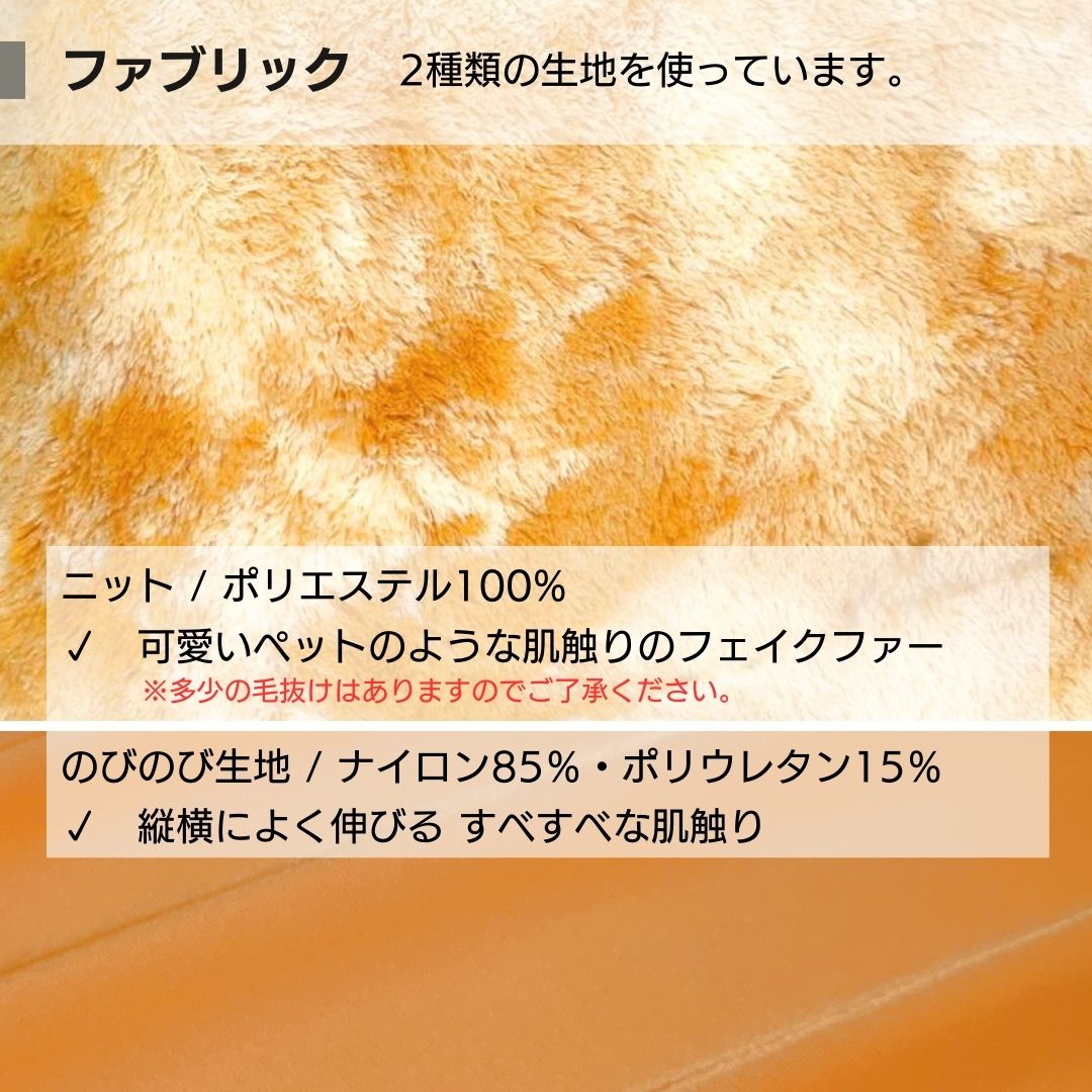 生地にはマーブル模様のフェイクファーを使用しており、触り心地はまさに可愛いペットを撫でているよう。